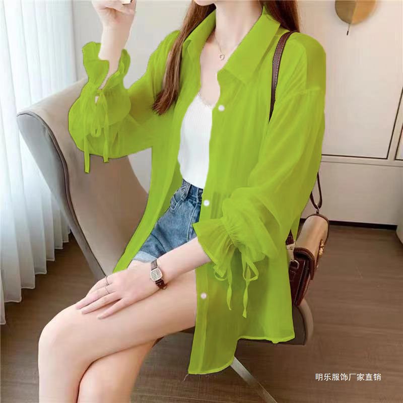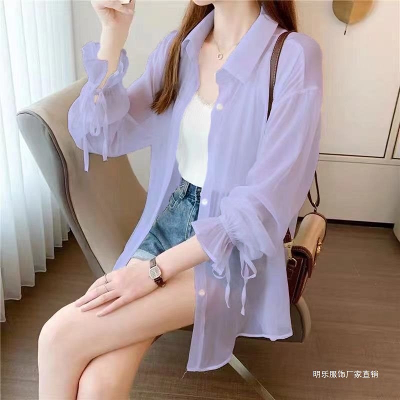 2024 New Chiffon Sunscreen Shirt Women's Thin Summer Outer Cardigan Bow Long Sleeve Sunscreen White