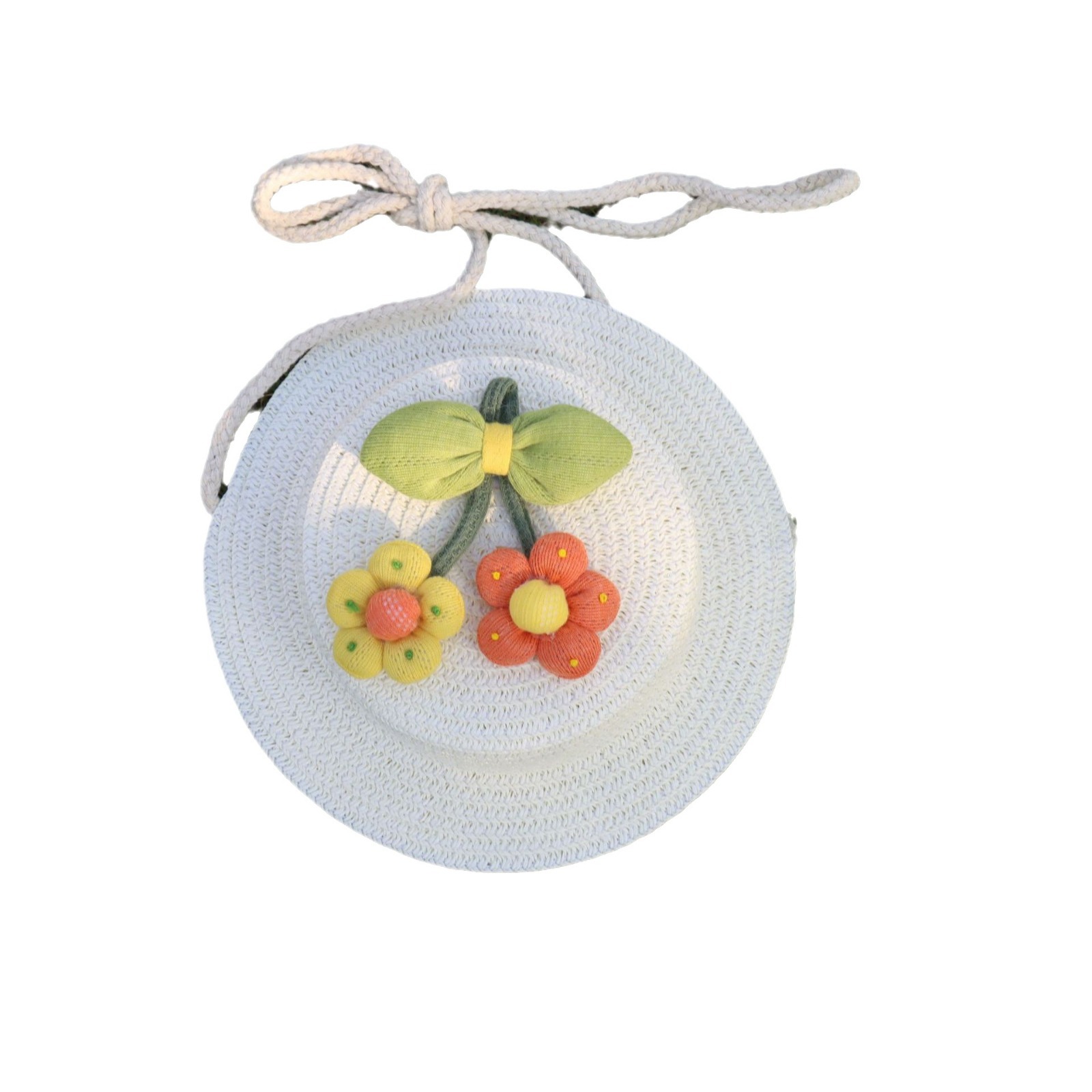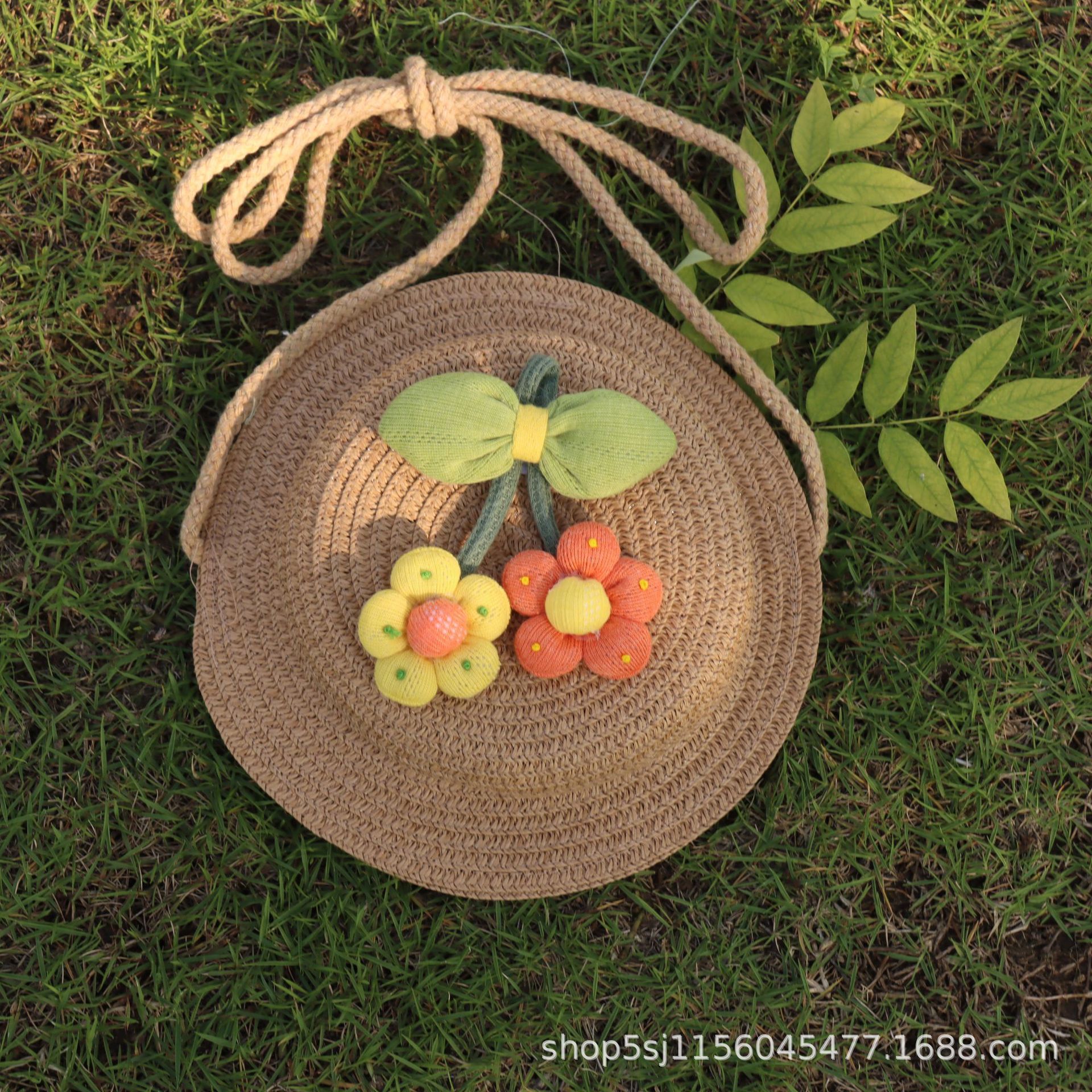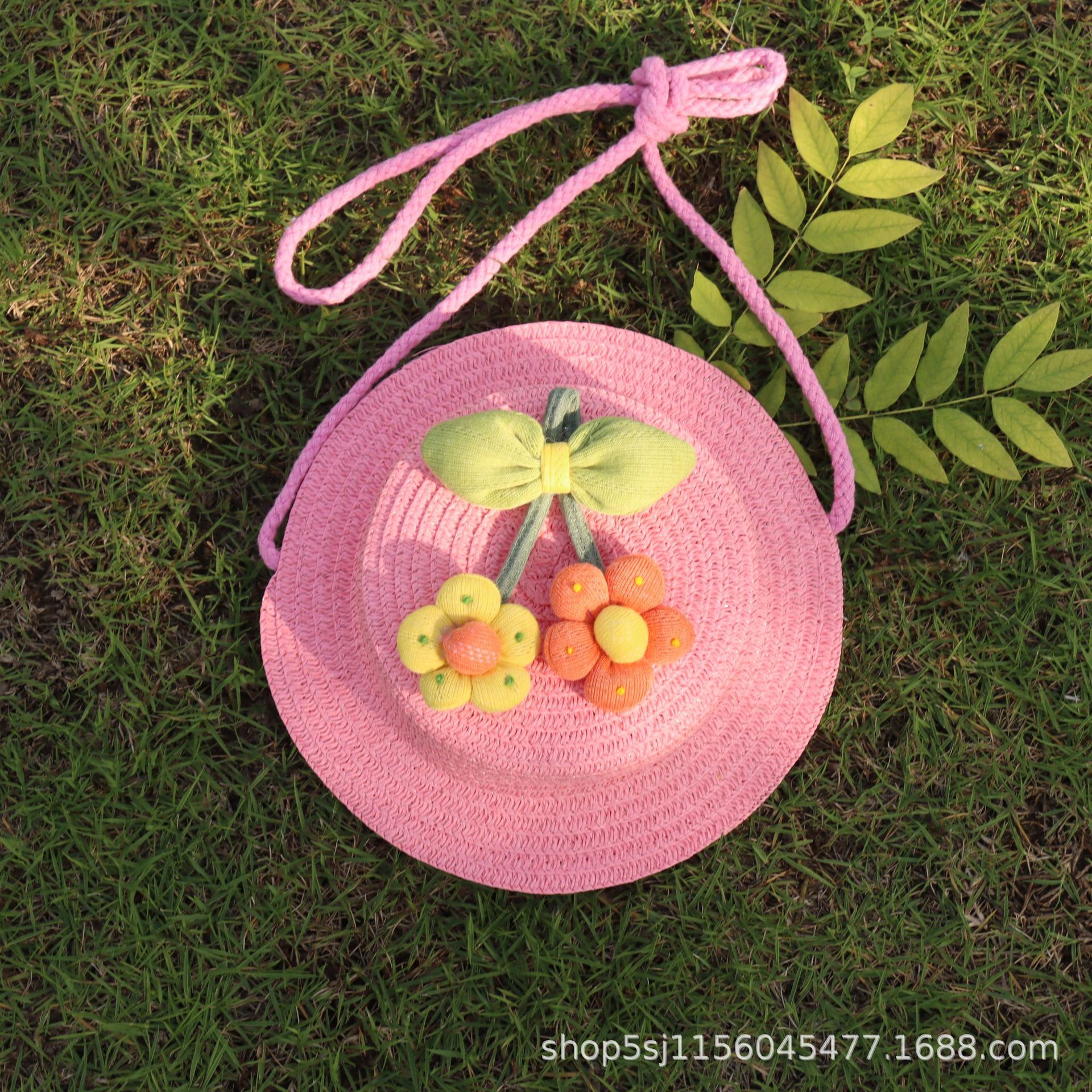 2024 New Children Girl Cute Flower Straw Bag Travel Scenic Seaside Crossbody Bag Coin Purse Hat Bag