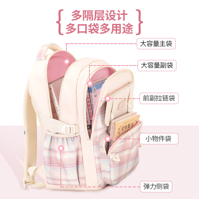 | nameOriginal | 2024 new children's plaid primary school student schoolbag 3-6 grade backpack spine protection Oxford cloth large capacity girl |