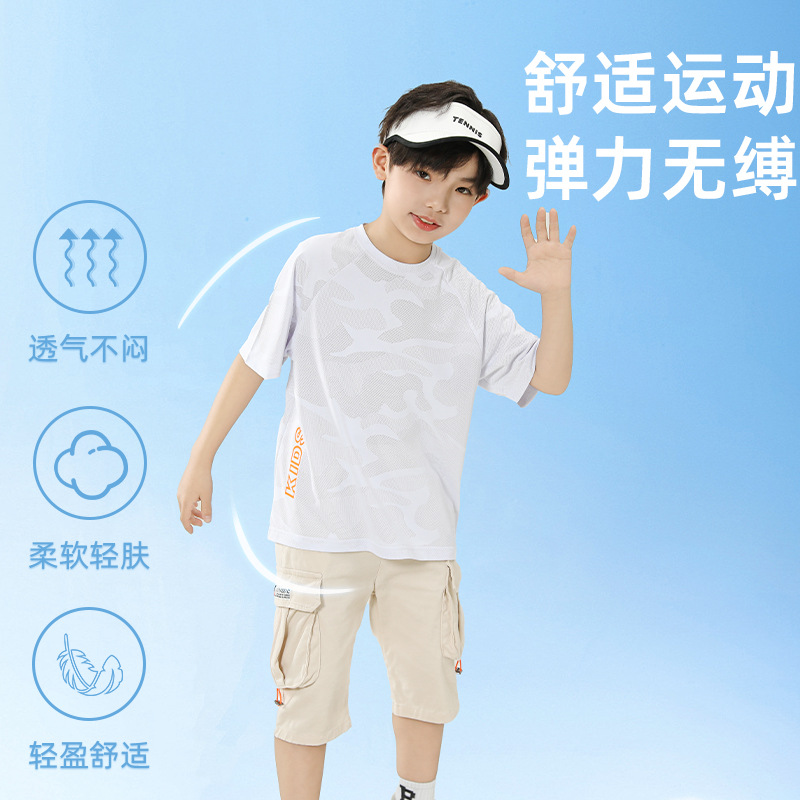 2024 New Children's Short-sleeved T-shirt Breathable Sweat-absorbent Summer Skin-friendly Comfortable Boys' Sports Top Half-sleeved Clothes