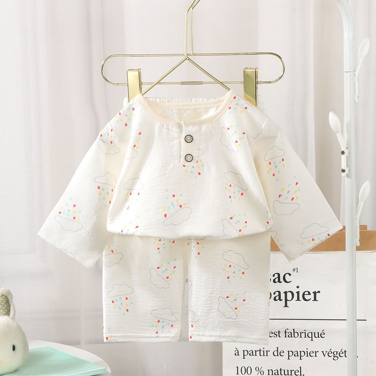 | nameOriginal | 2024 new children's summer children's pajamas three-quarter sleeve home wear suit boys and girls thin air conditioning clothes |