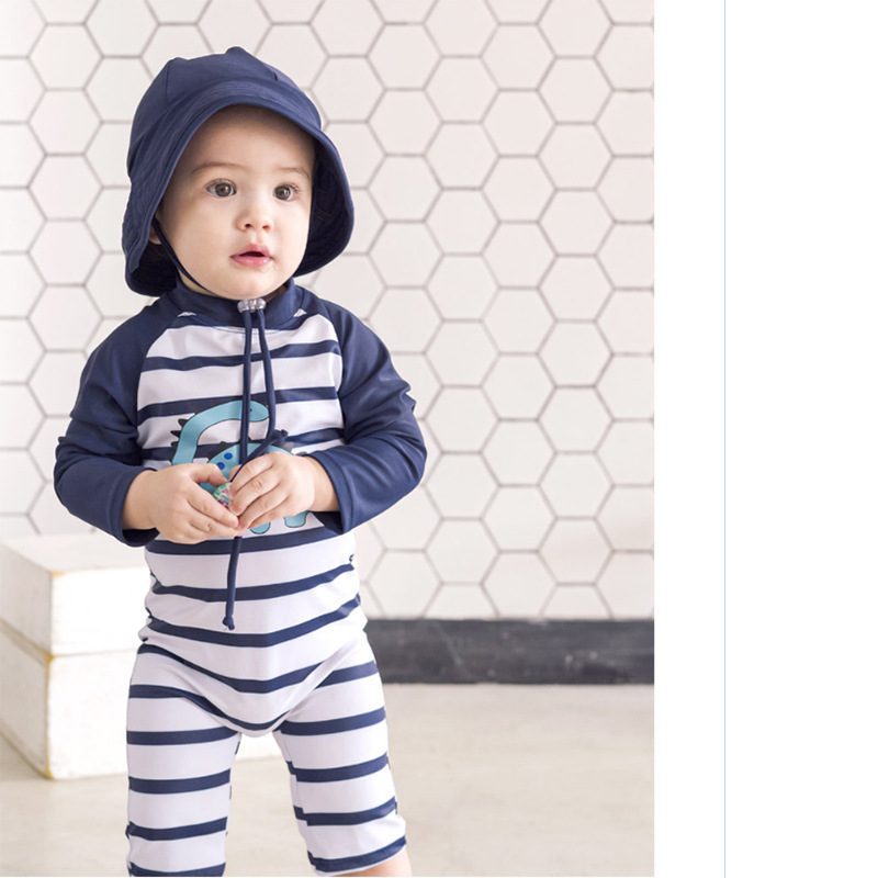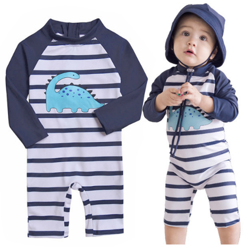 2024 new children's swimsuit boy one-piece cartoon dinosaur surfing suit sunscreen bathing suit wholesale sun visor