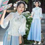 2024 New Chinese Embroidered Collar Lace Mid-Sleeve Modified Cheongsam Vintage Ethnic Style Top Skirt Women’s Suit