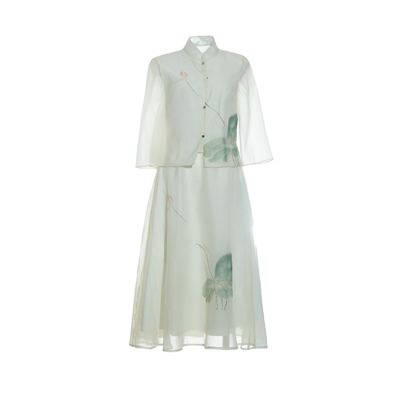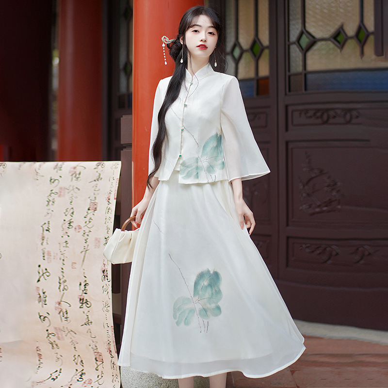 | nameOriginal | 2024 new Chinese ink lotus Chinese style small fresh top elastic waist lotus pond painting skirt suit |