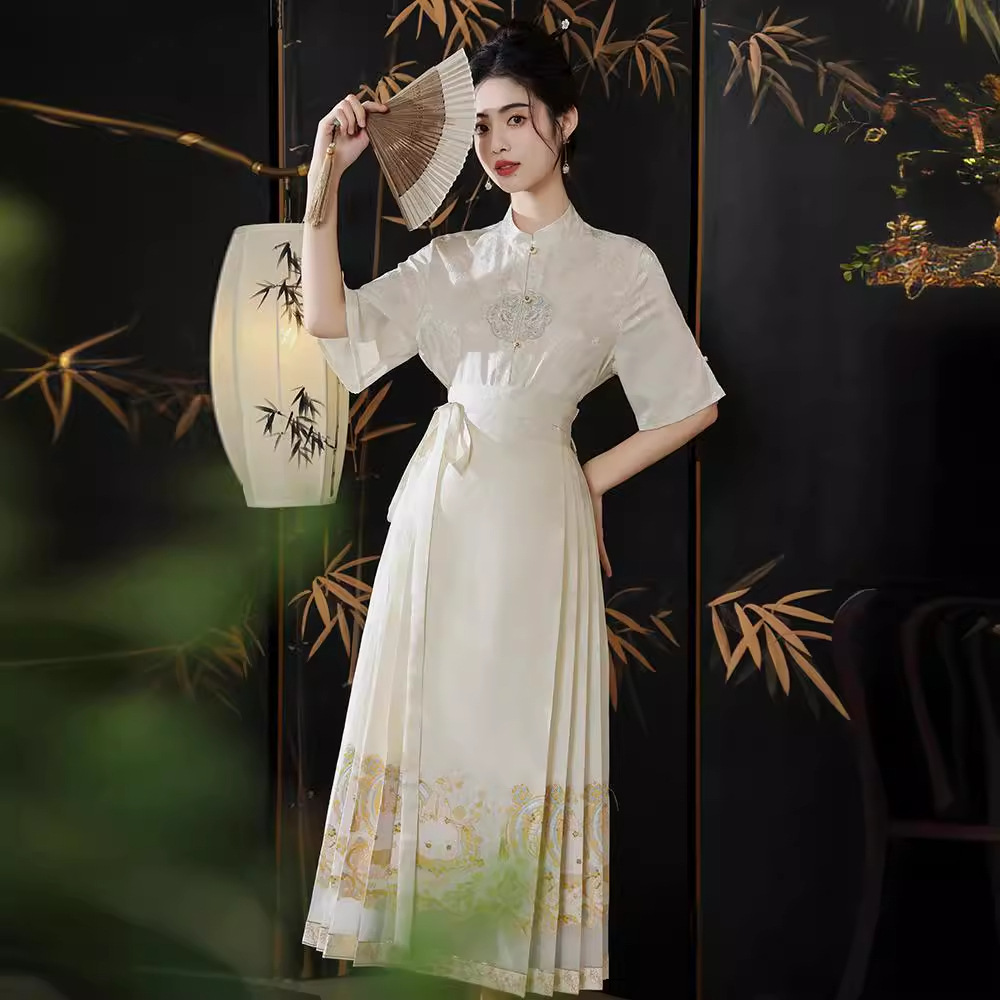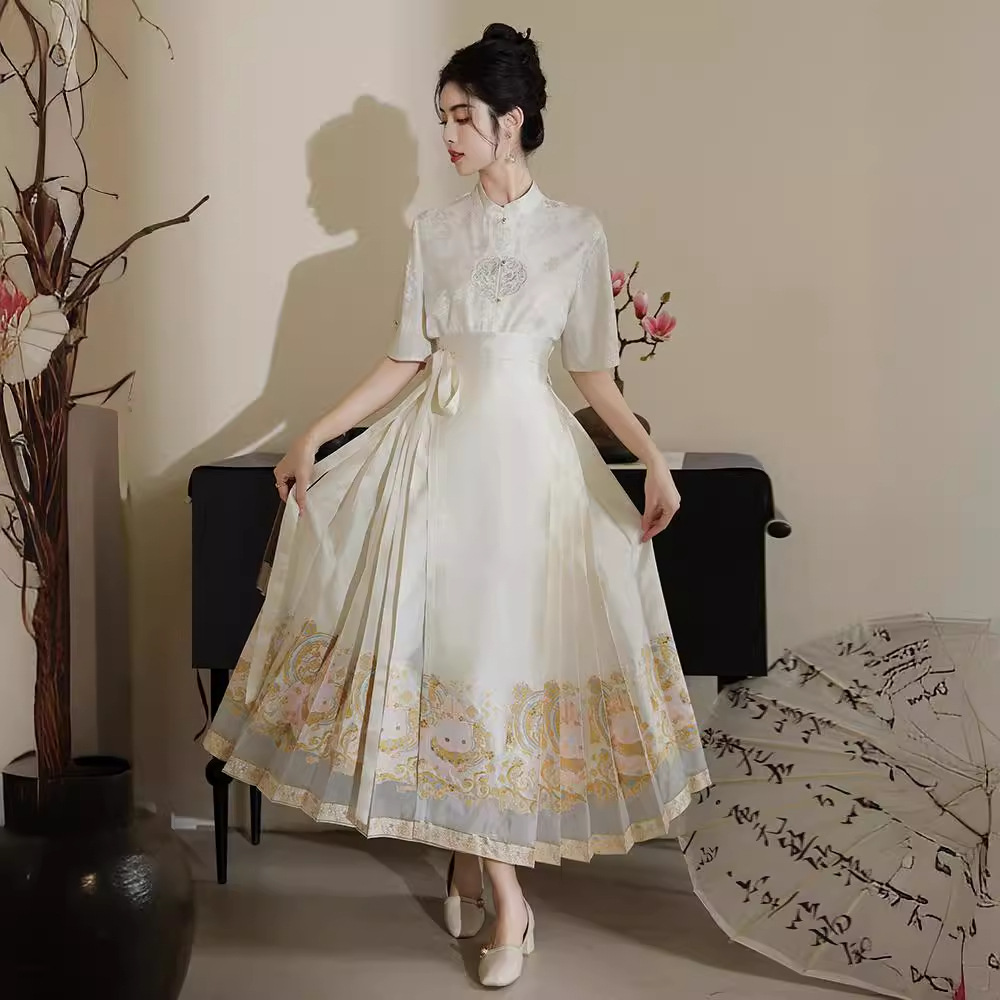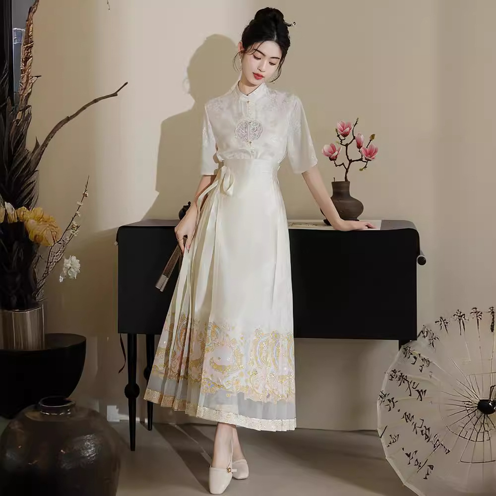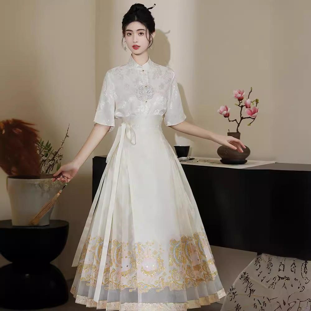 2024 New Chinese Style Chinese Style Hanfu Women’s Hollow Summer Woven Gold One-piece Classical Style Horse-faced Skirt suit Women’s High-end