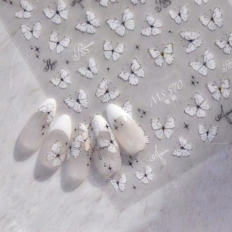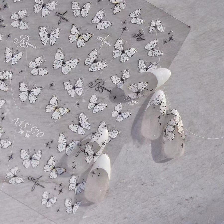 | nameOriginal | 2024 New Chinese Style Cool White Butterfly Nail Art Sticker Thin Tough Hand-painted Sketch Butterfly Small Star Mount Adhesive Nail Sticker |