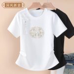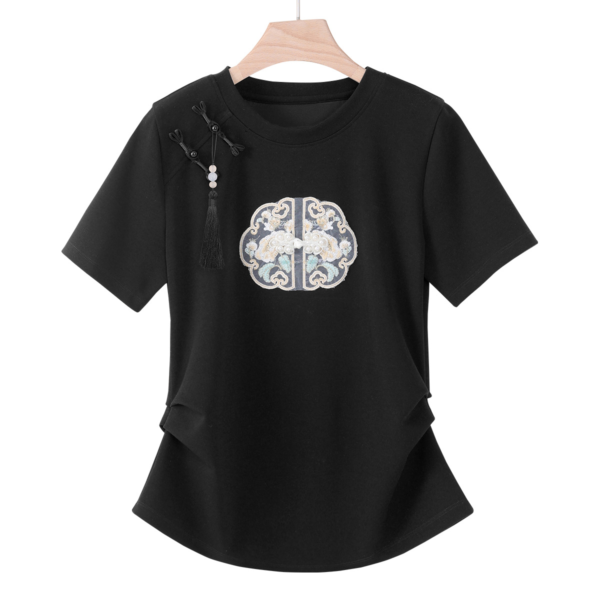 2024 New Chinese style embroidered short-sleeved T-shirt women’s spring and summer national style top chic Western style with vest dress clothes