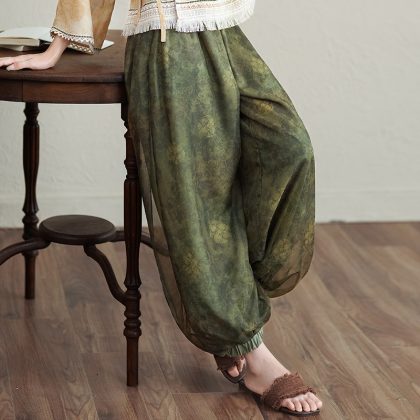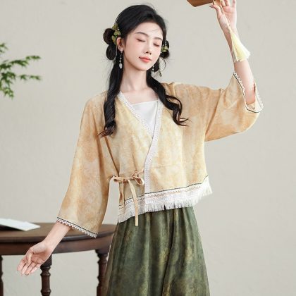 2024 New Chinese Style Retro Classical V-Neck Lace-Up Cardigan Top Classical Modified Ancient Rhyme Bloomers suit
