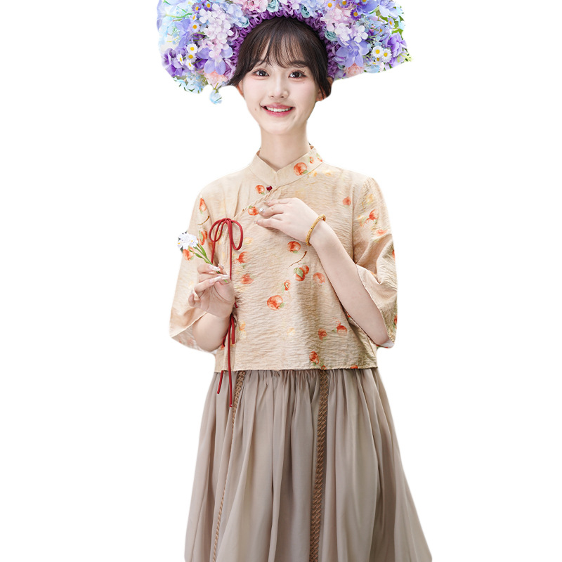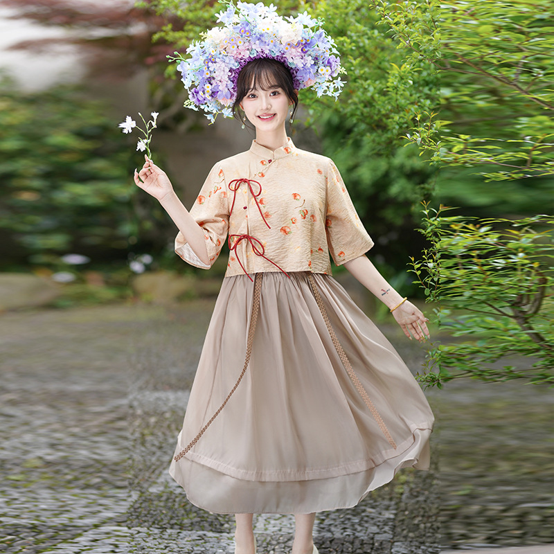 | nameOriginal | 2024 new Chinese style suit modified cheongsam dress two-piece fairy spirit hemp cotton art girl suit |