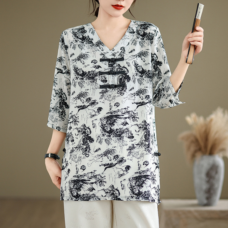 | nameOriginal | 2024 New Chinese Style V Flower Collar Button Shirt Women's 2024 New Retro National Style Elegant High-grade Flying Sleeve Top |