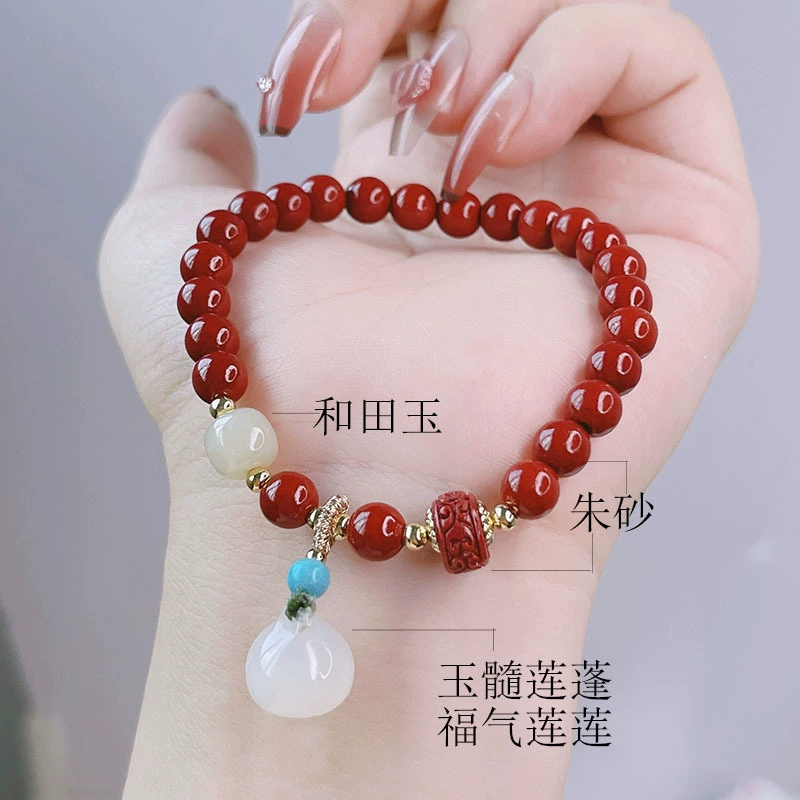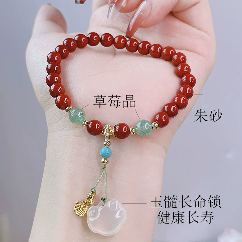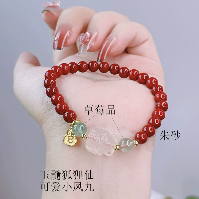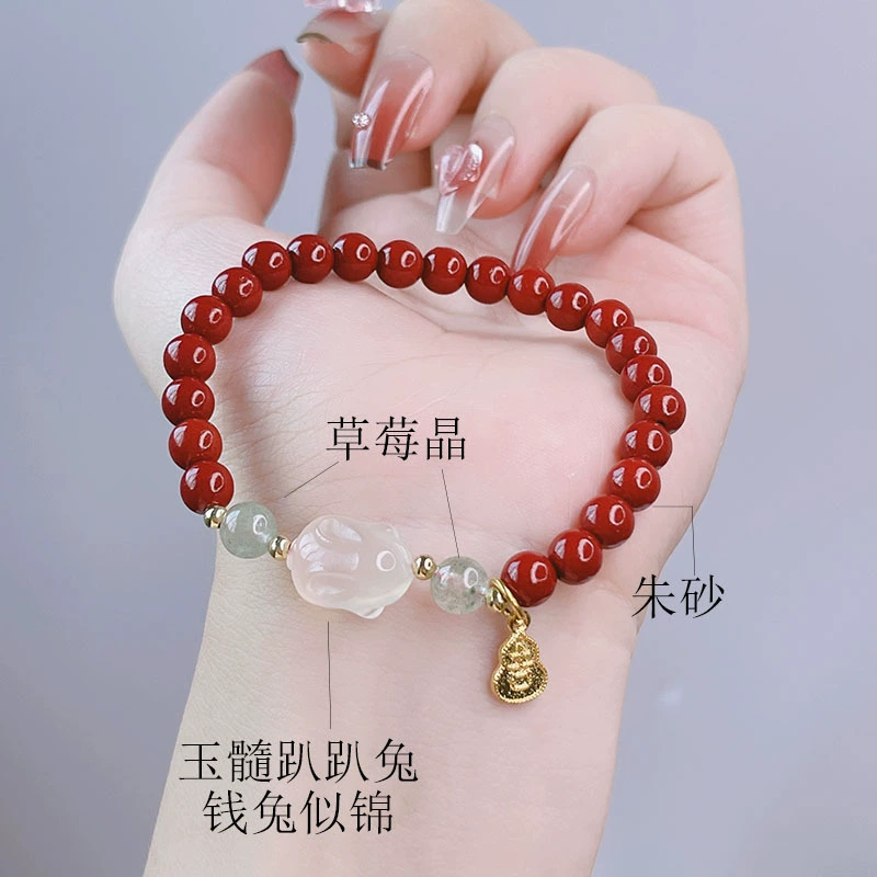 | nameOriginal | 2024 New Cinnabar Bracelet Women's Year of the Pig Rabbit Chalcedony Good Luck Longevity Lock Lotus Pengfeng Nine Bracelet Ornament |