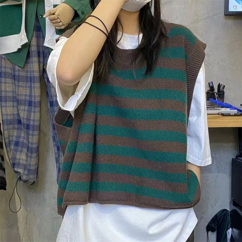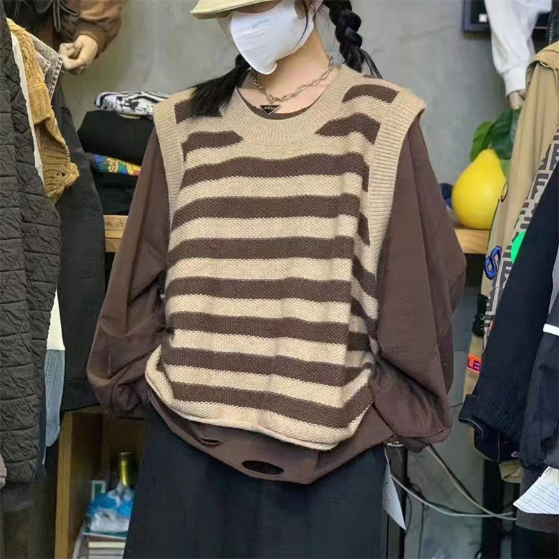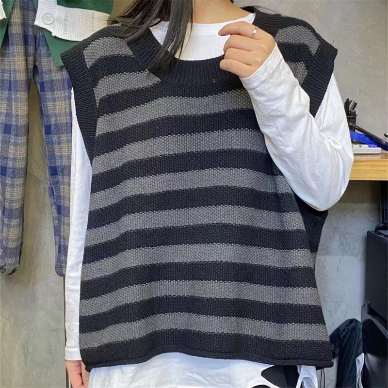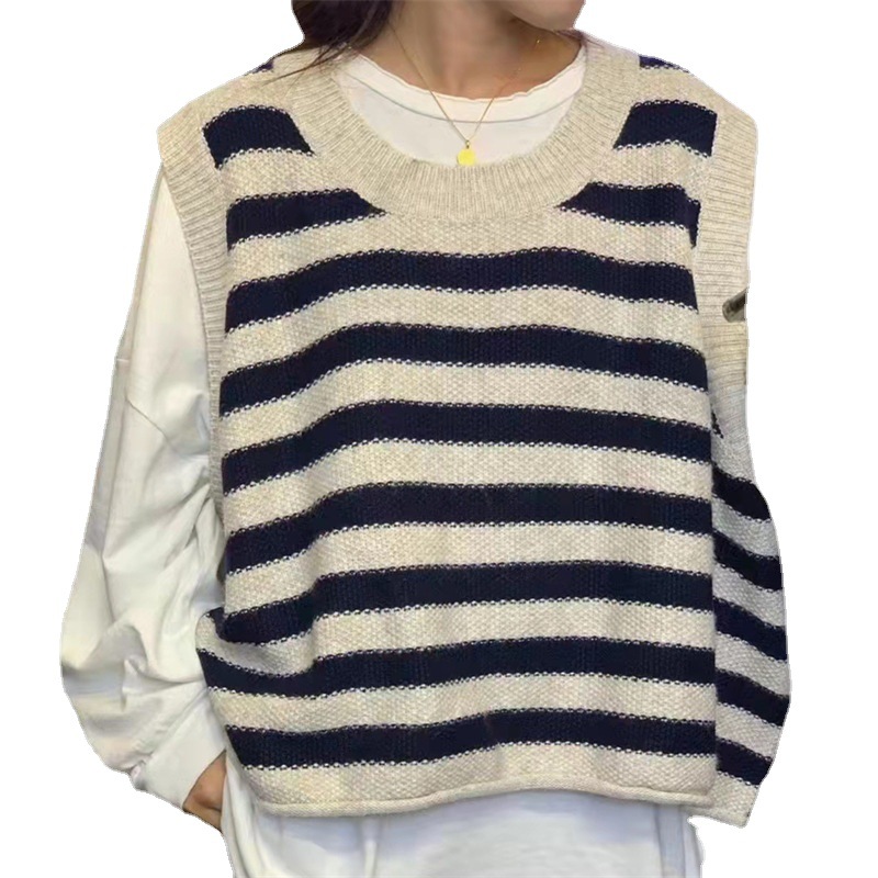 | nameOriginal | 2024 New College Style Striped Knitted Vest Autumn and Winter Chic Crewneck Waistcoat Stacked Sleeveless Top |