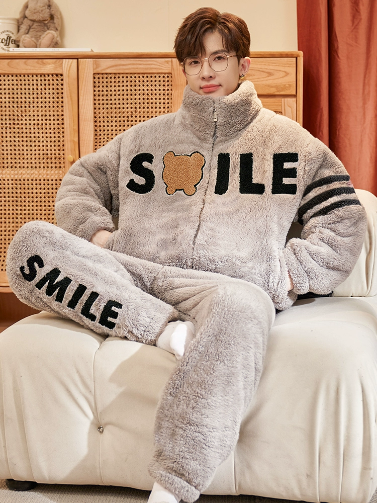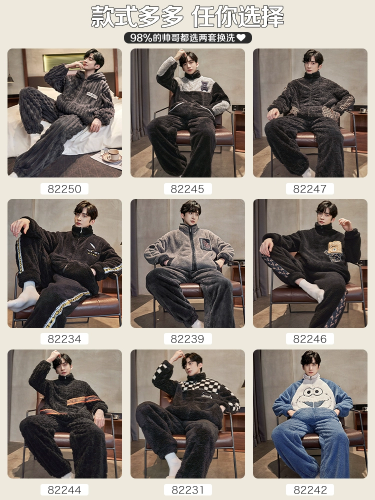 | nameOriginal | 2024 New Coral Fleece Pajamas Men's Autumn and Winter Thickened and Velvet Warm Flannel Home Clothing Set |