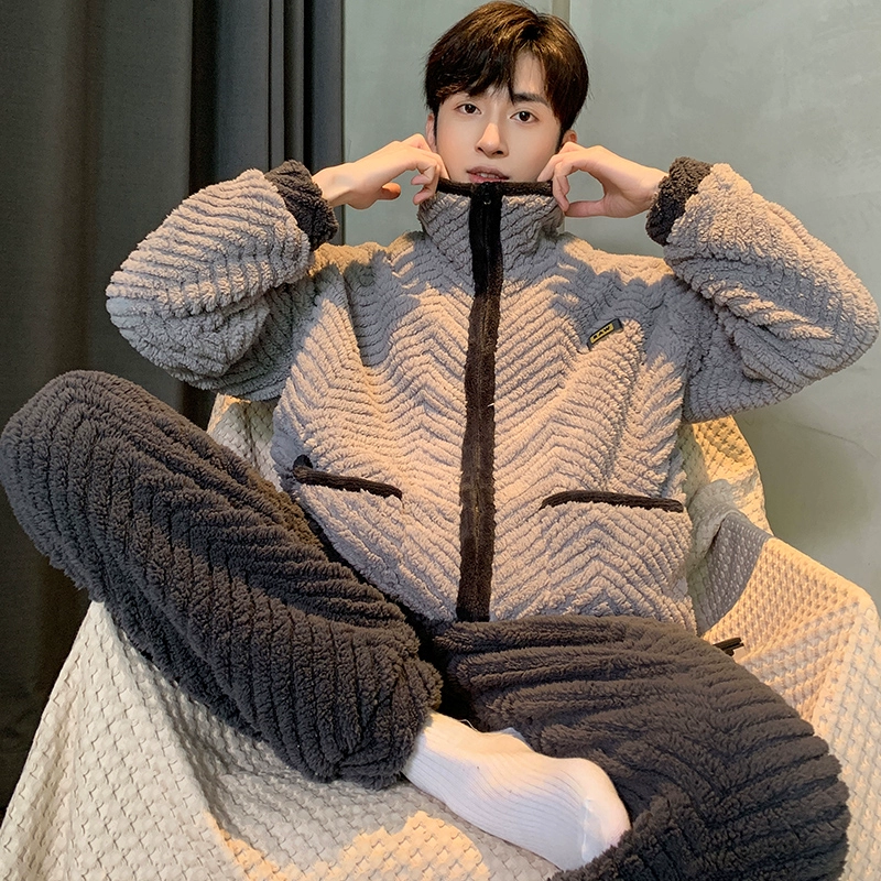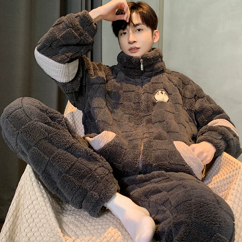 | nameOriginal | 2024 New Coral Fleece Thickened Velvet Men's Pajamas Autumn and Winter Teenage Students Zipper Home Clothes Set |