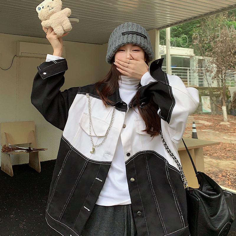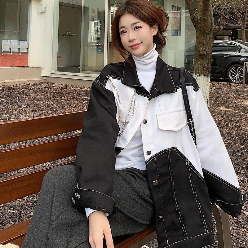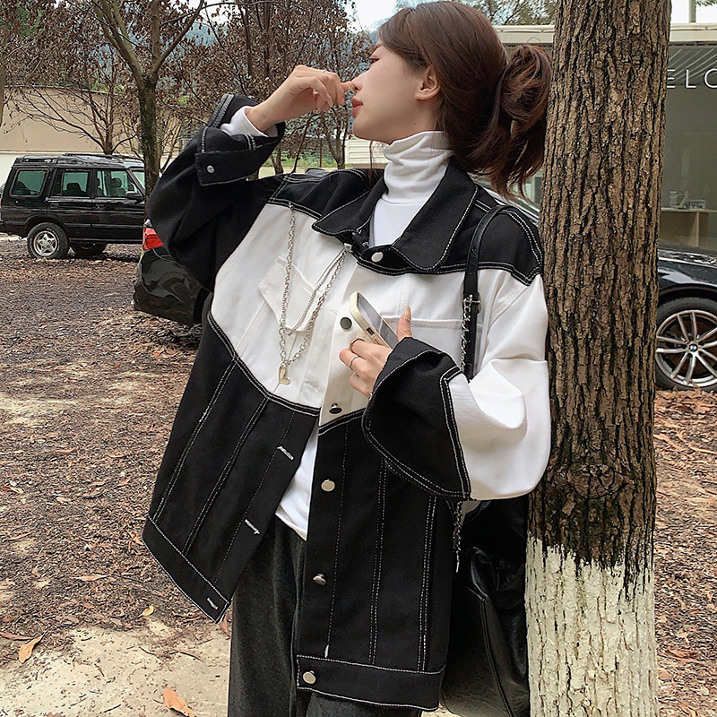 | nameOriginal | 2024 New Denim coat Korean style fashionable all-matching loose casual black and white stitching jacket top contrast color coat for women |