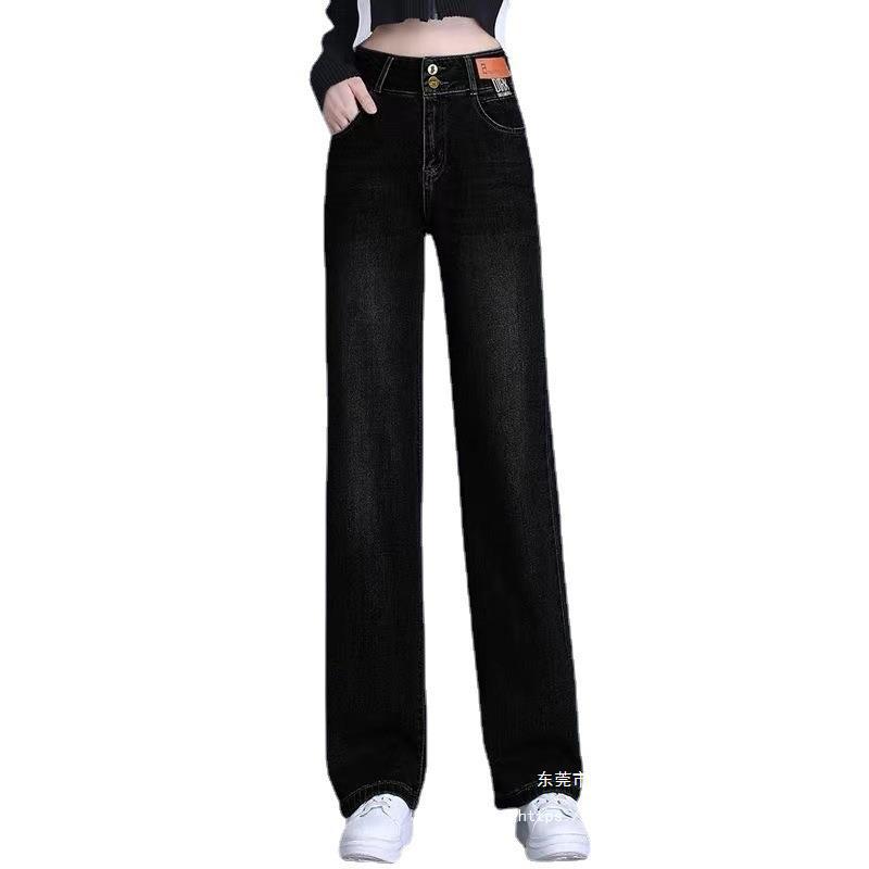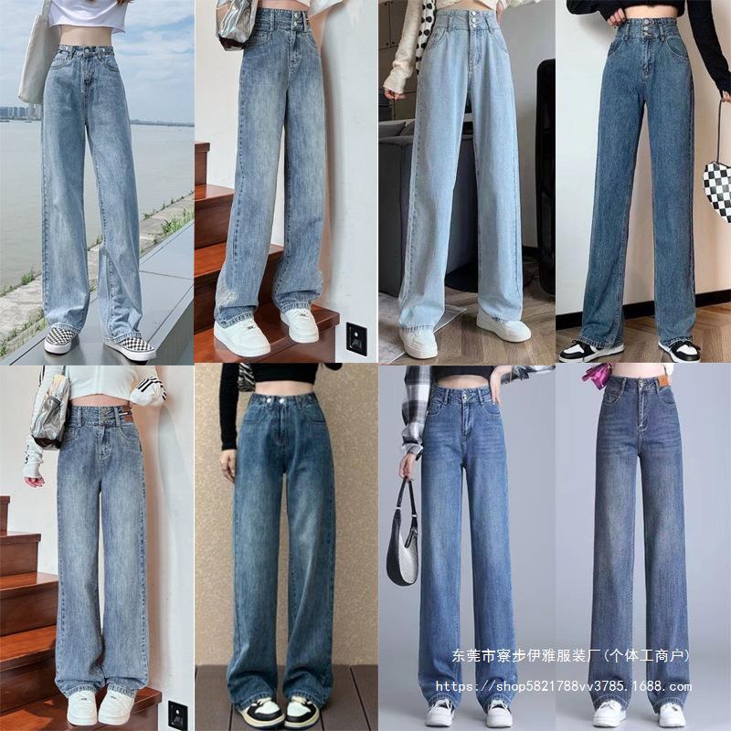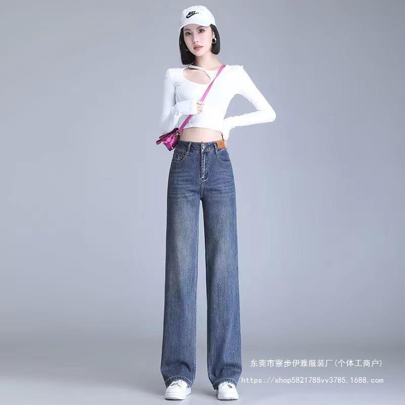 2024 New Denim wide-leg pants women’s fashionable high waist draping casual loose slimming straight mop jeans