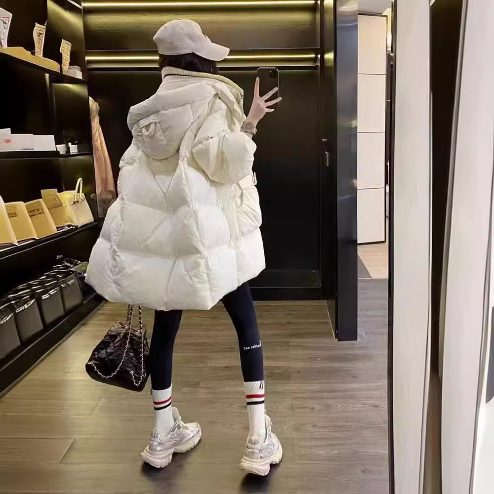 | nameOriginal | 2024 New Down Jacket Hooded Wool Fashionable Elegant Loose Mid-length White Duck Down Warm All-match Jacket |