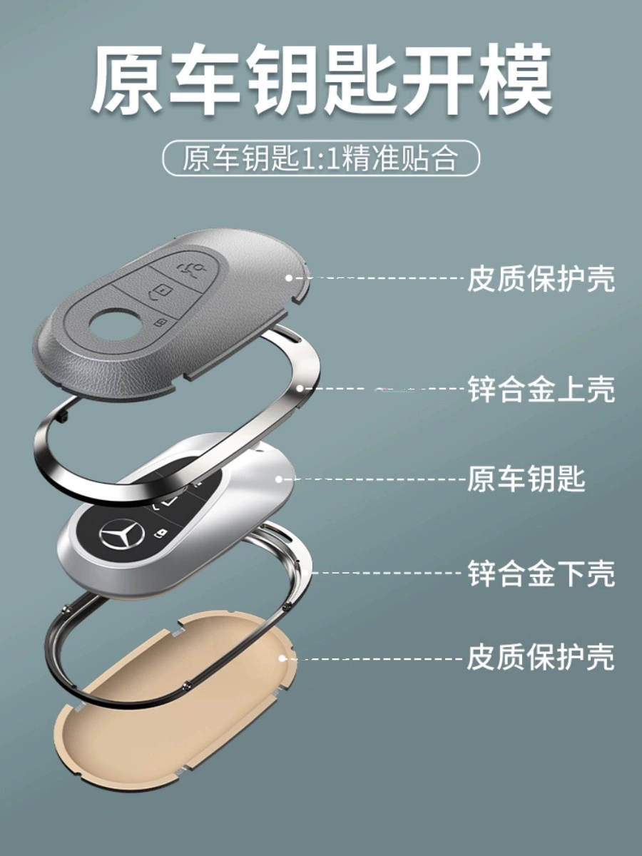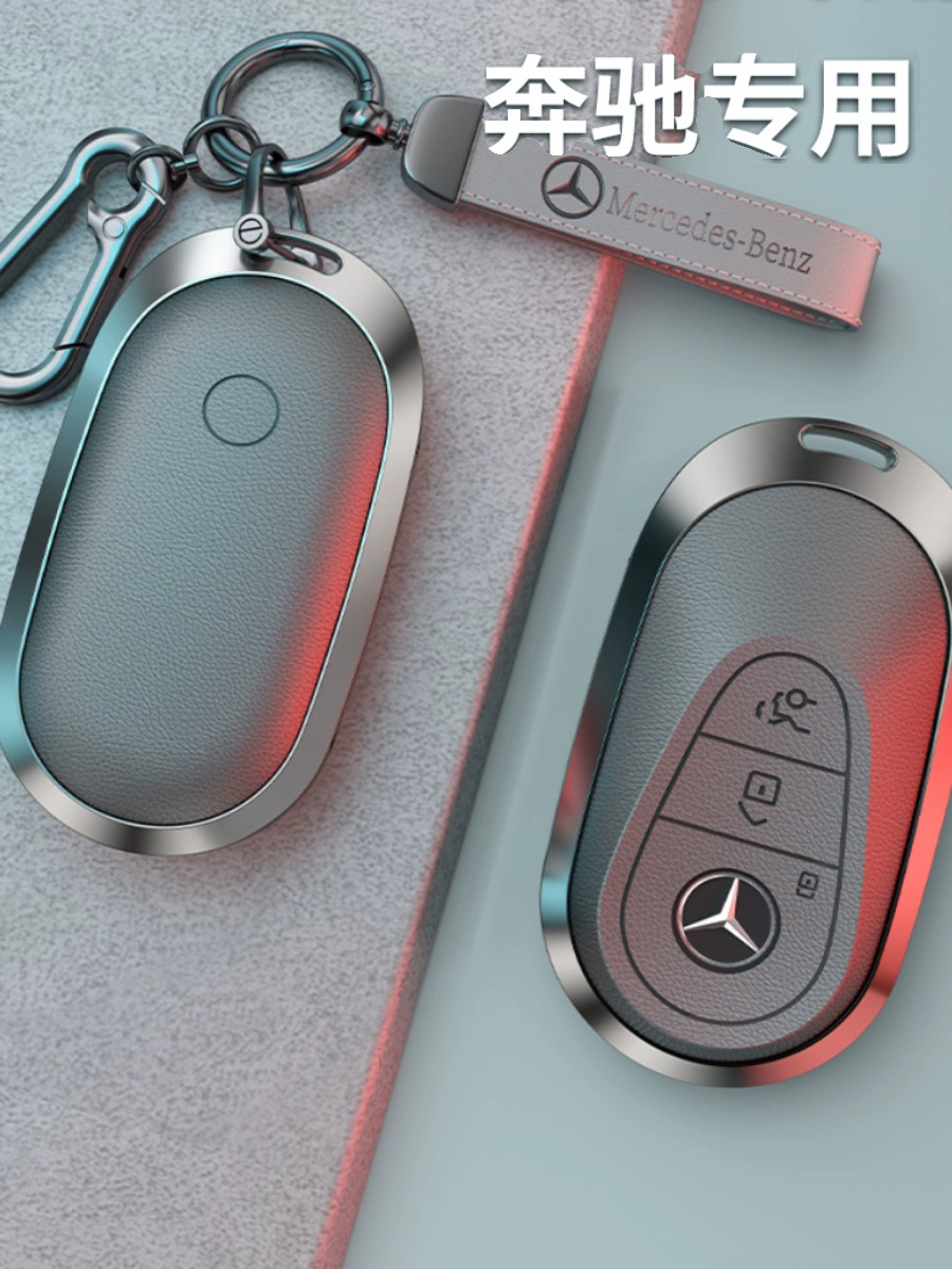 2024 new E-class E300L metal all-inclusive cowhide car key cover remote control buckle shell genuine leather anti-fall