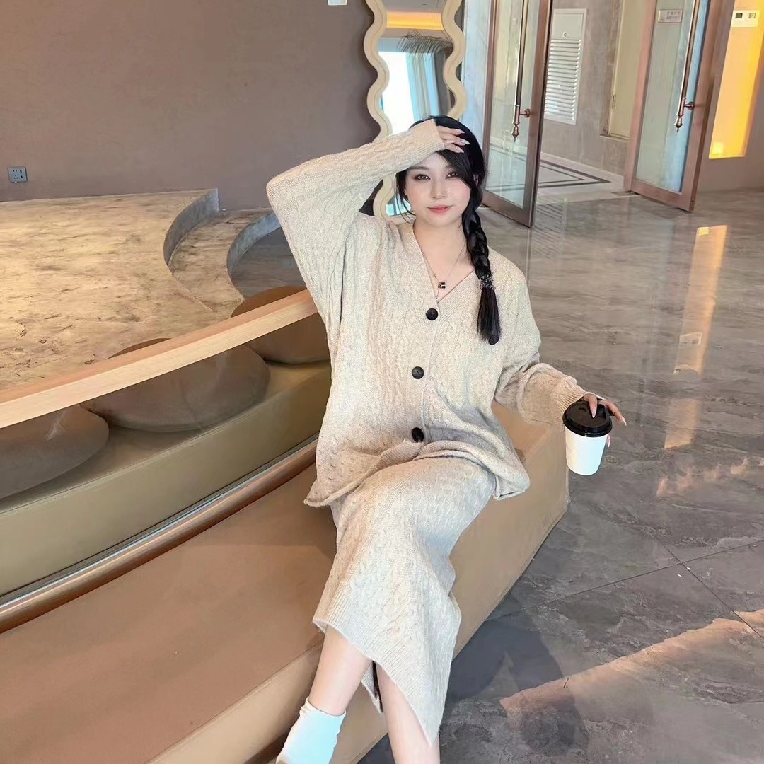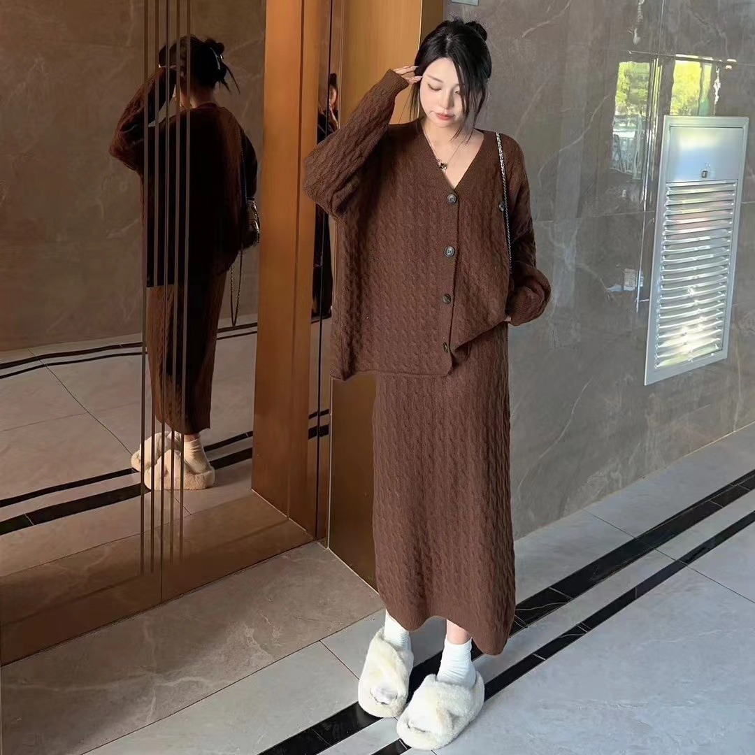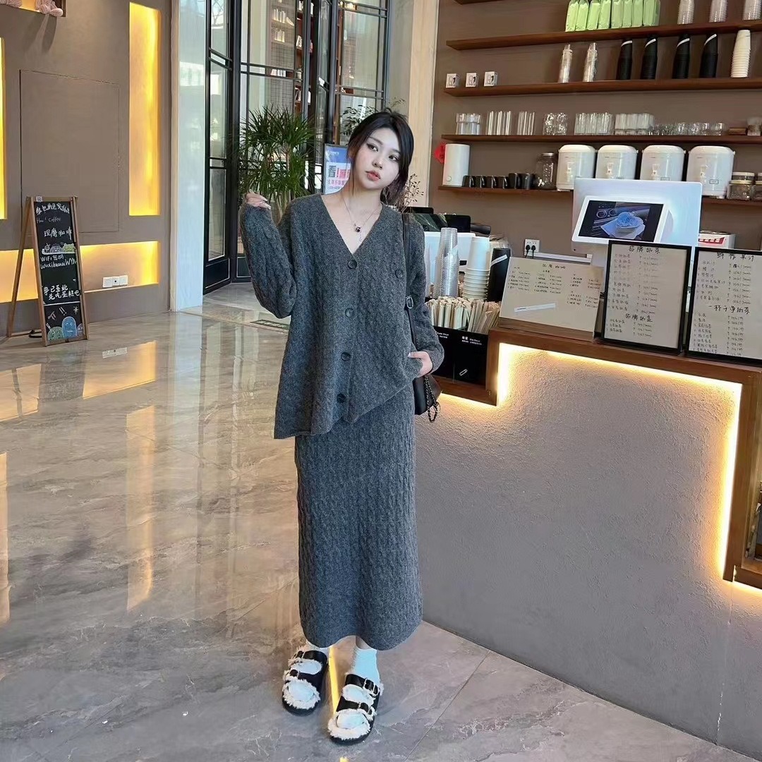 | nameOriginal | 2024 New elegant casual suit skirt V-neck twist knitted cardigan women's spring and autumn split skirt two-piece set |