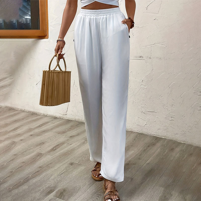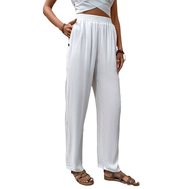 | nameOriginal | 2024 New Elegant Solid Color Button Decorative Straight Casual Pants Commuter High Waist Wide Leg Pants Women's Pants |