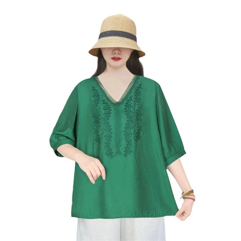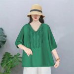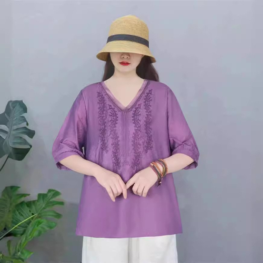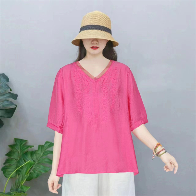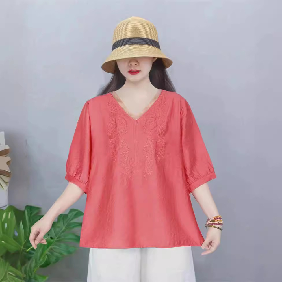 | nameOriginal | 2024 New Embroidered Tencel Cotton and Linen Ethnic Style Retro V-Neck Artistic Loose Stitching Top |