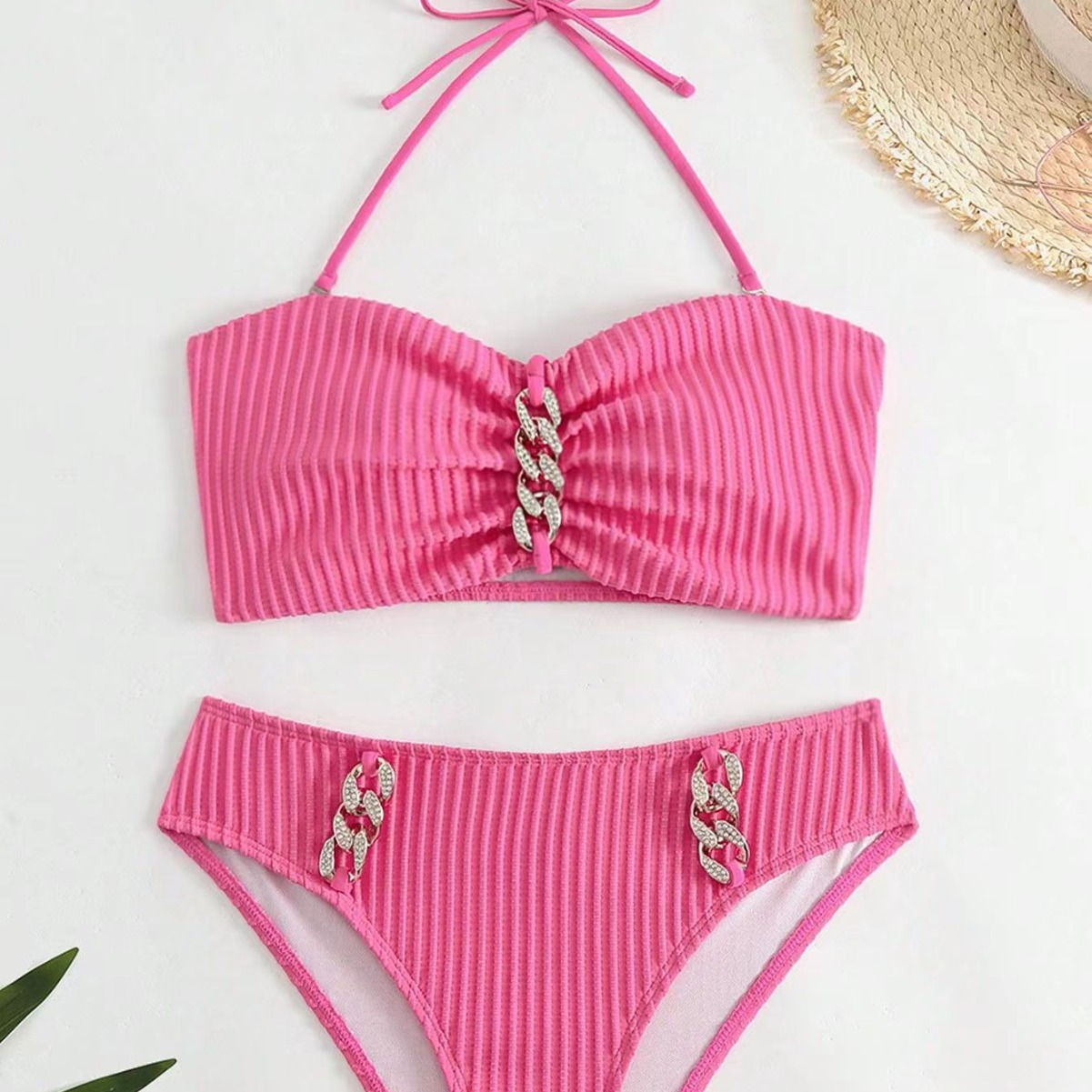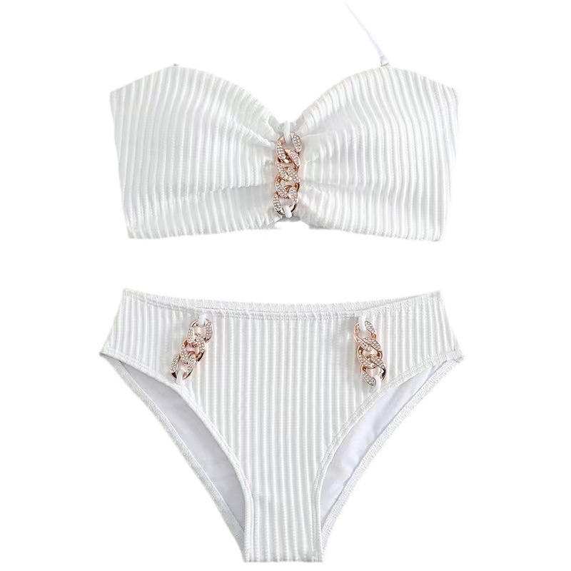 | nameOriginal | 2024 new European and American bikini suit cross-border wish striped halter fashion split biniki swimsuit for women |