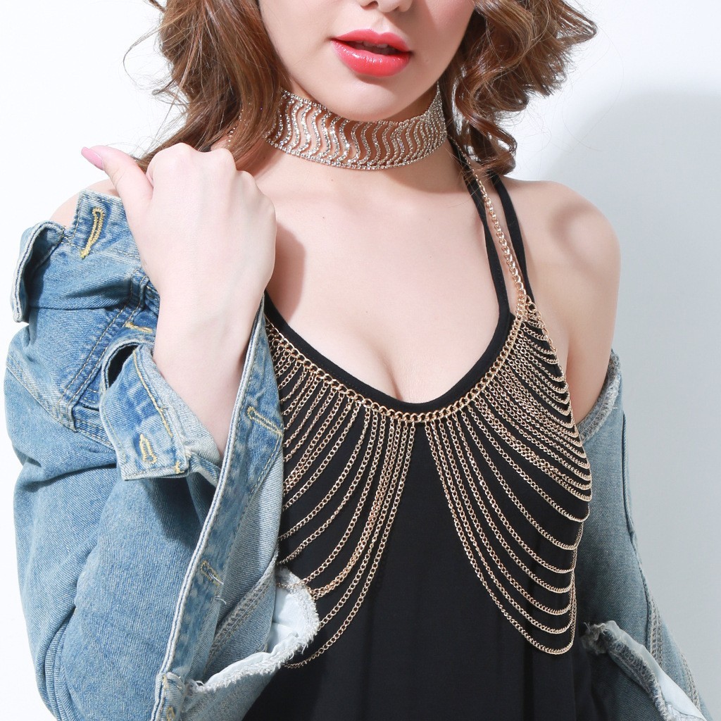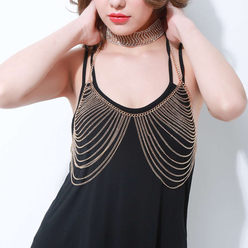 | nameOriginal | 2024 new European and American cross-border jewelry gold multi-layer chain chest chain exaggerated tassel long body chain accessories |