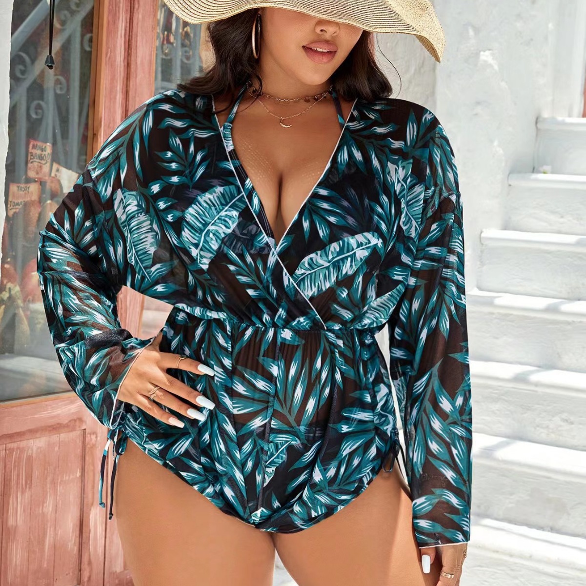 | nameOriginal | 2024 new European and American Foreign trade cross-border three-piece swimsuit women's Mesh Digital printing long-sleeved blouse bikini |