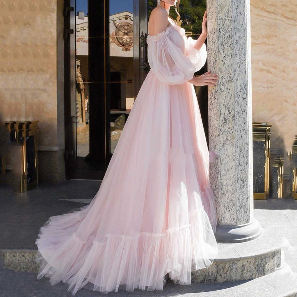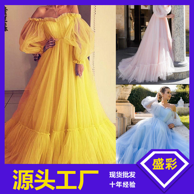 | nameOriginal | 2024 new European and American foreign trade women's wish off-shoulder mesh long wedding dress large swing dress new |