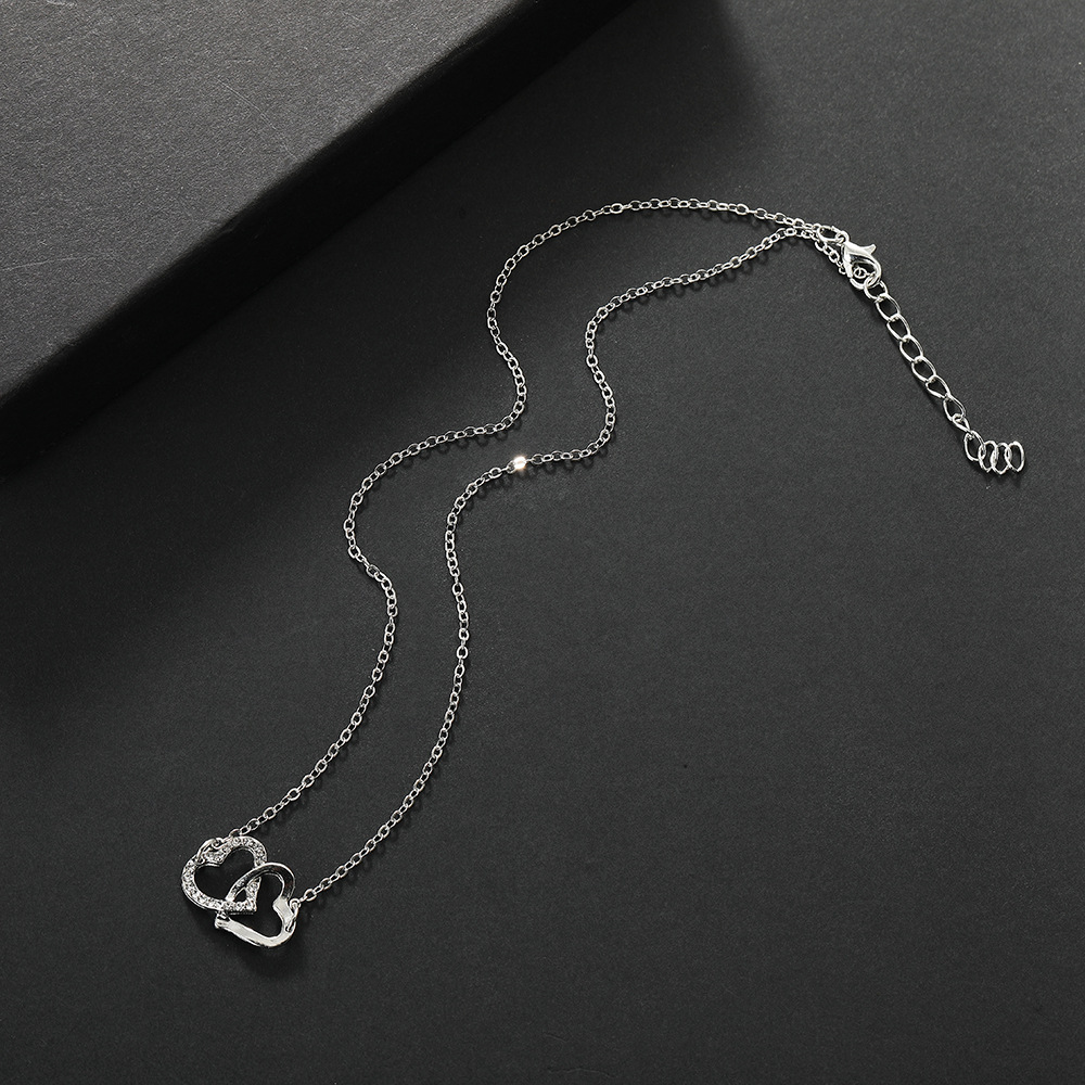 | nameOriginal | 2024 new European and American simple double love necklace jewelry suit light luxury bridal double peach heart jewelry four-piece set |