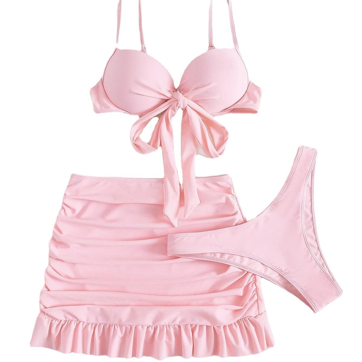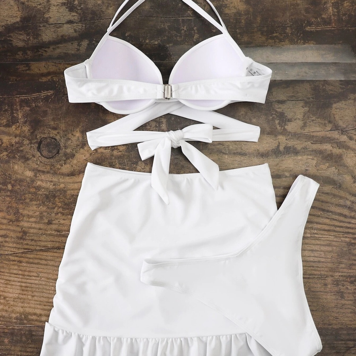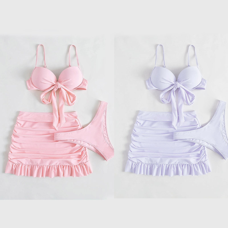 | nameOriginal | 2024 New European and American Split Swimsuit Women's Sexy Solid Color Hard Bag Bikini Lace-up High Waist Skirt Hot Spring Swimsuit |