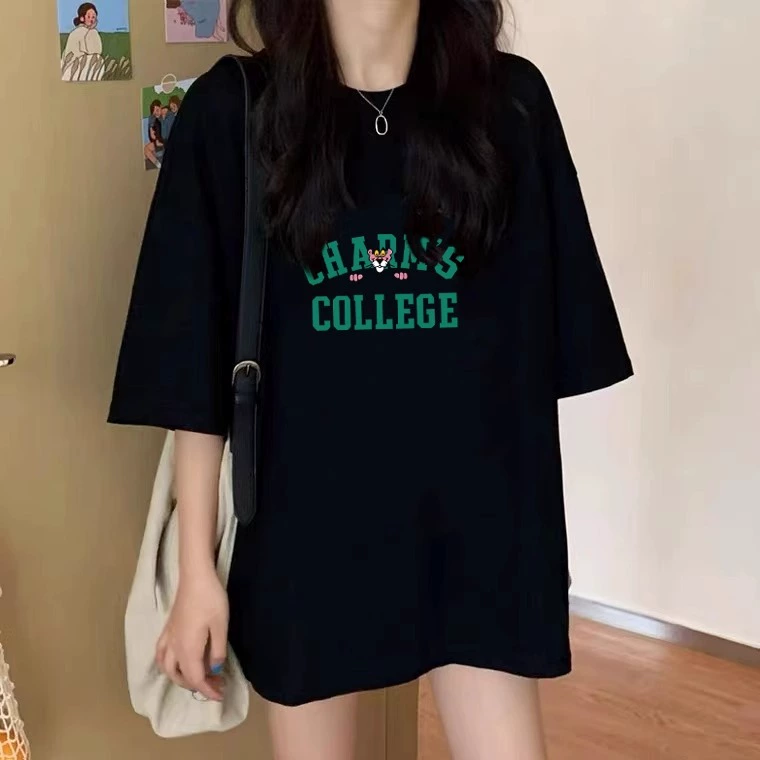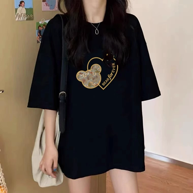 | nameOriginal | 2024 new European pure cotton mid-length t-shirt women's bottoms missing loose design black large short-sleeved top |