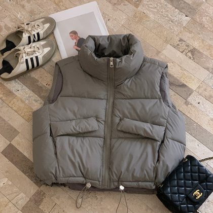 | nameOriginal | 2024 new European winter cotton vest women's stand collar waistcoat short warm vest small size cotton-padded jacket vest tide |