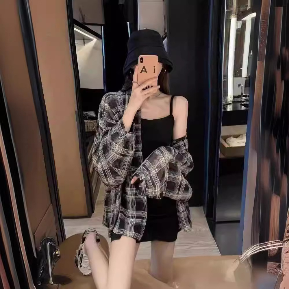 | nameOriginal | 2024 New Explosive Blouse Thin High-end Sense Shirt French Top Loose Plaid Sunscreen Shirt Women's Summer |