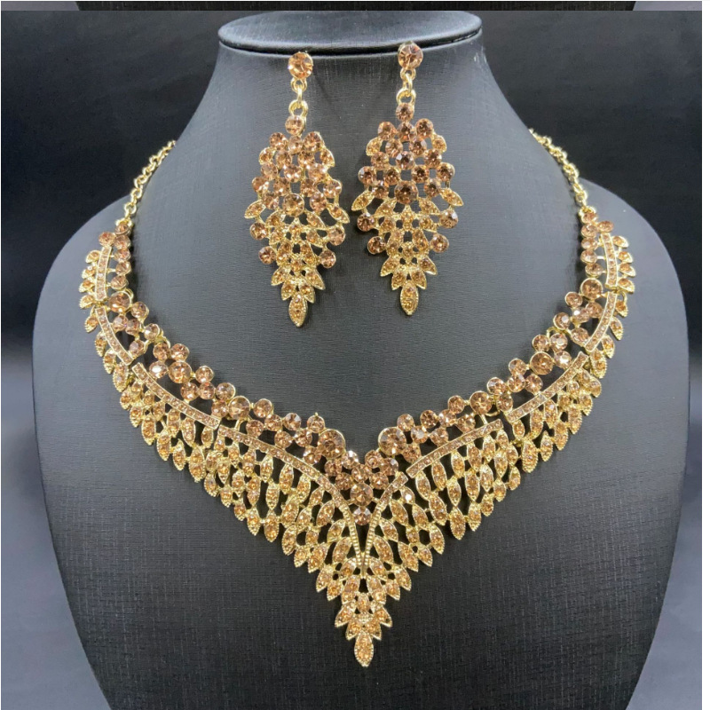 | nameOriginal | 2024 New Exquisite Rhinestone Necklace Earrings Set Party Dress Wedding Accessories Alloy Cross-border Jewelry Supply |