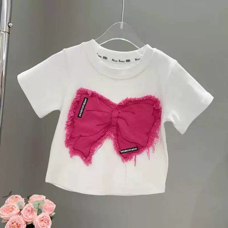 2024 new fashion casual bow short-sleeved T-shirt