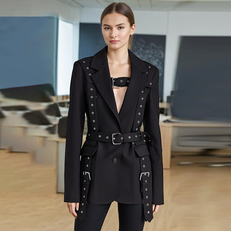 | nameOriginal | 2024 New Fashion Personality Design Stitching Lace-up Waist Slimming Solid Color Elegant Suit Jacket Women's Trendy |