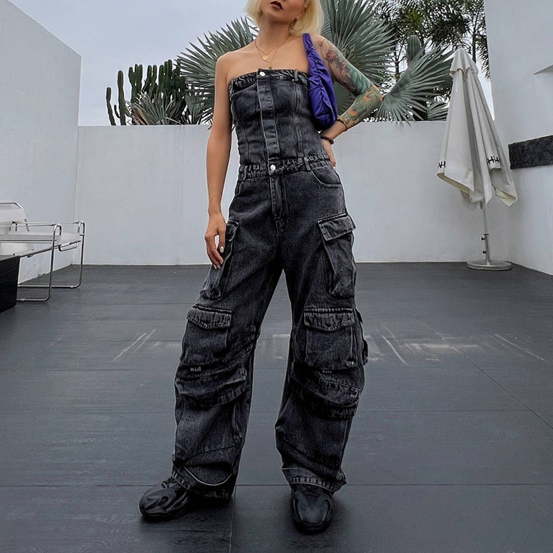 | nameOriginal | 2024 New Fashion Street Style Strapless Waist Body Spice Girls Multi-Pocket Denim Crane Jumpsuit |