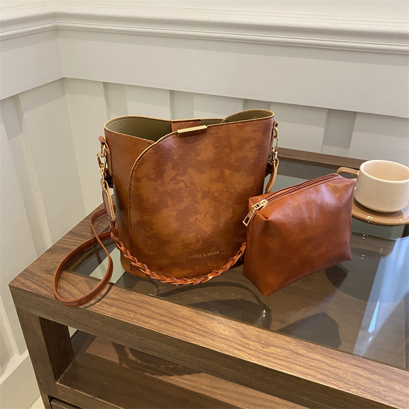 2024 New Fashion Women's Bag Casual Color One-shoulder Underarm Bag Crossbody Portable Bucket Bag Two-piece Set Mother Bag