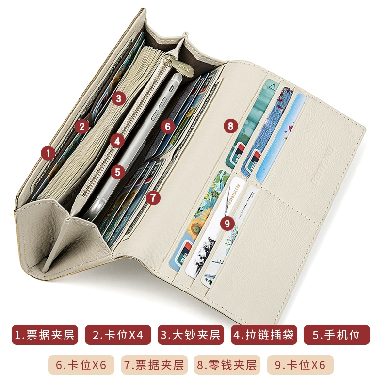 | nameOriginal | 2024 New Fashion Women's Wallet Women's Long Genuine Leather Wallet Women's European and American Large Capacity Gold Clutch |