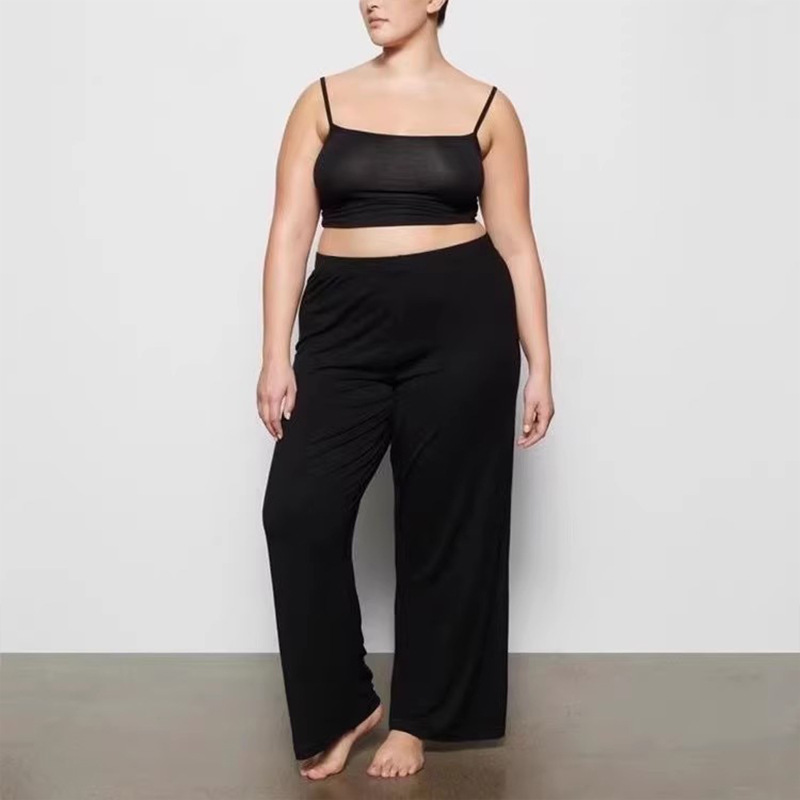 | nameOriginal | 2024 new flannel elastic waist trousers plain loose wide leg pants casual pants waist thin trousers |