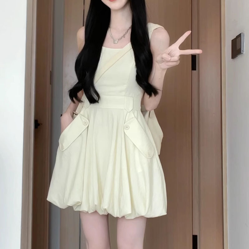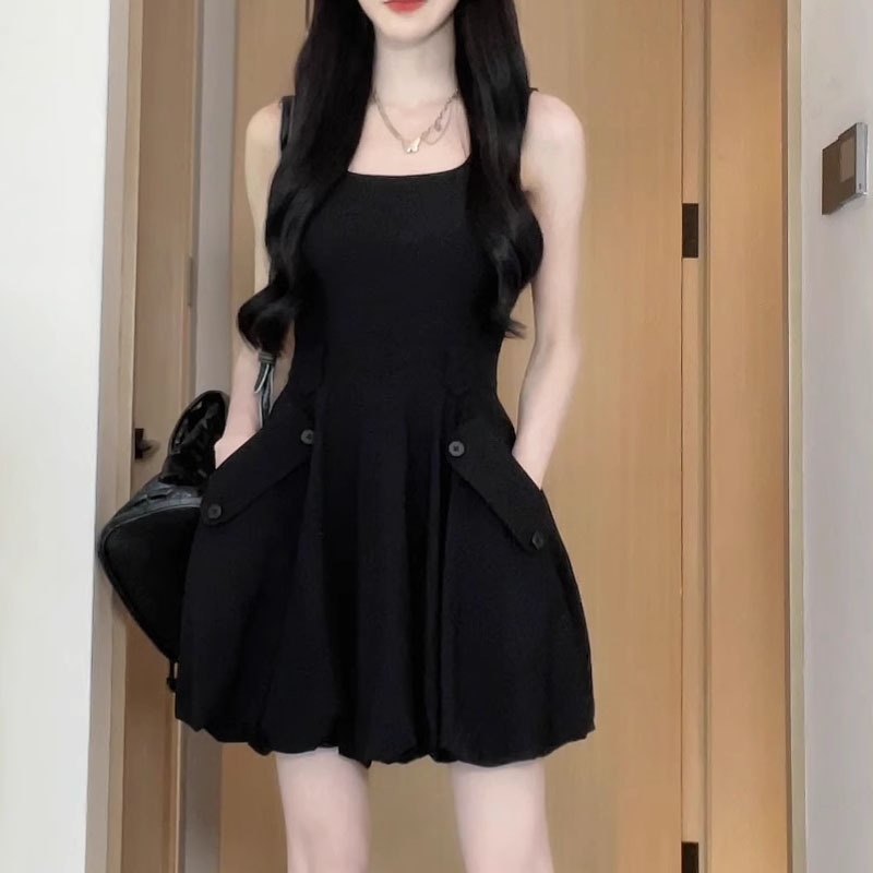 | nameOriginal | 2024 new flower bud strap skirt pocket work dress women's waist slim puffy skirt summer new skirt |
