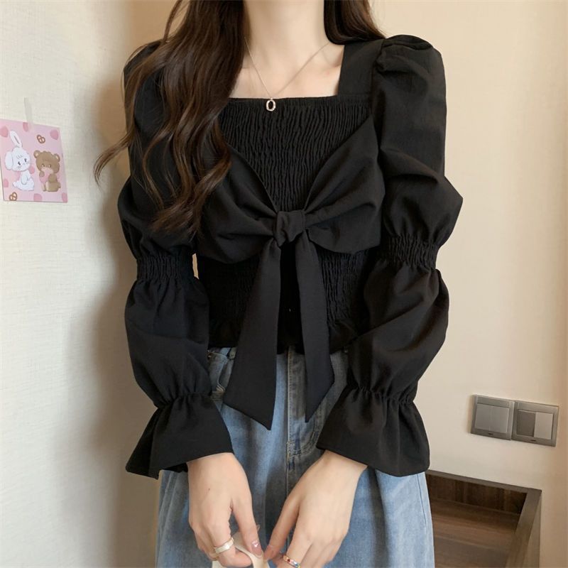 | nameOriginal | 2024 New French Niche Short Long-sleeved Shirt Design Sense Slim-fit Slimming Bow Base Shirt Top for Women |
