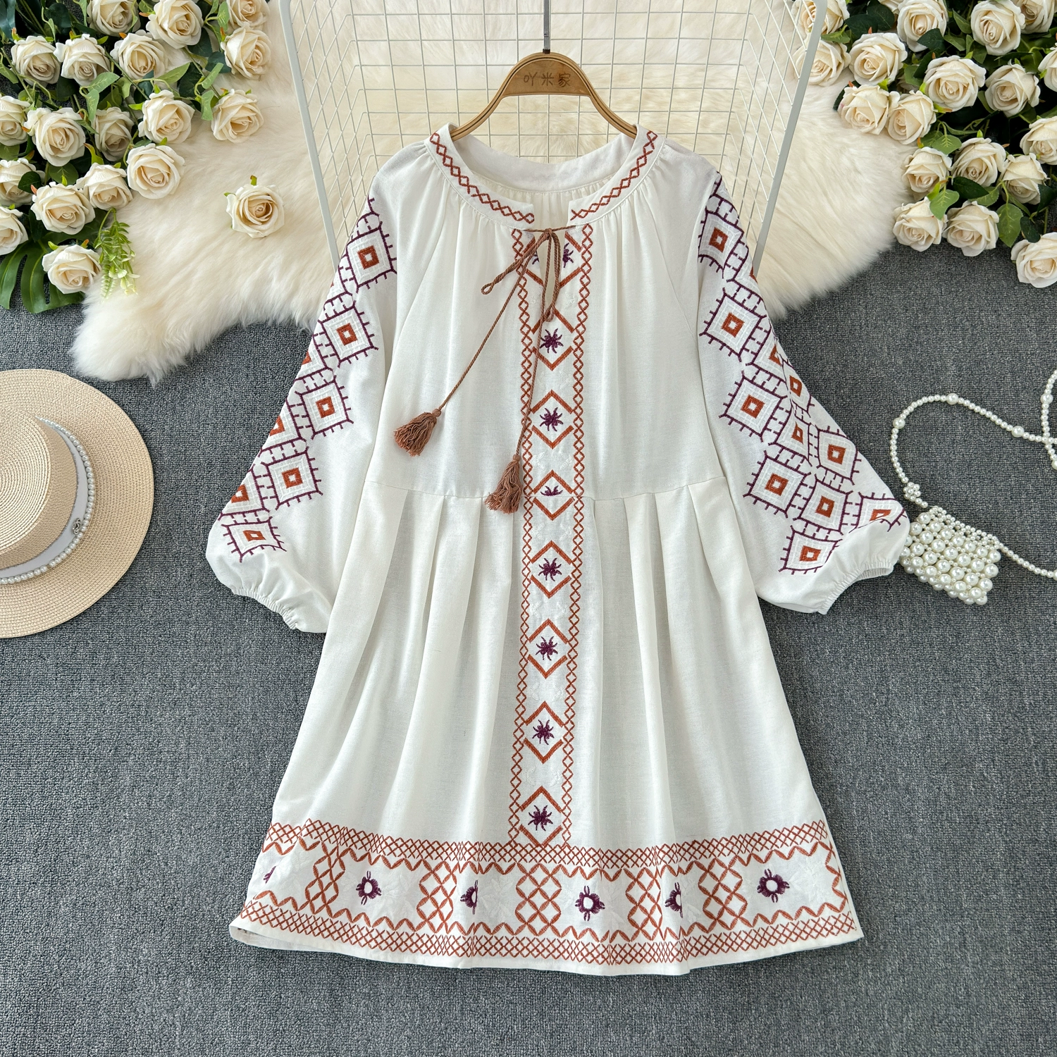 | nameOriginal | 2024 New French Retro Small Ethnic Style Yunnan Travel Wear Women's Shirts High-end Dresses |