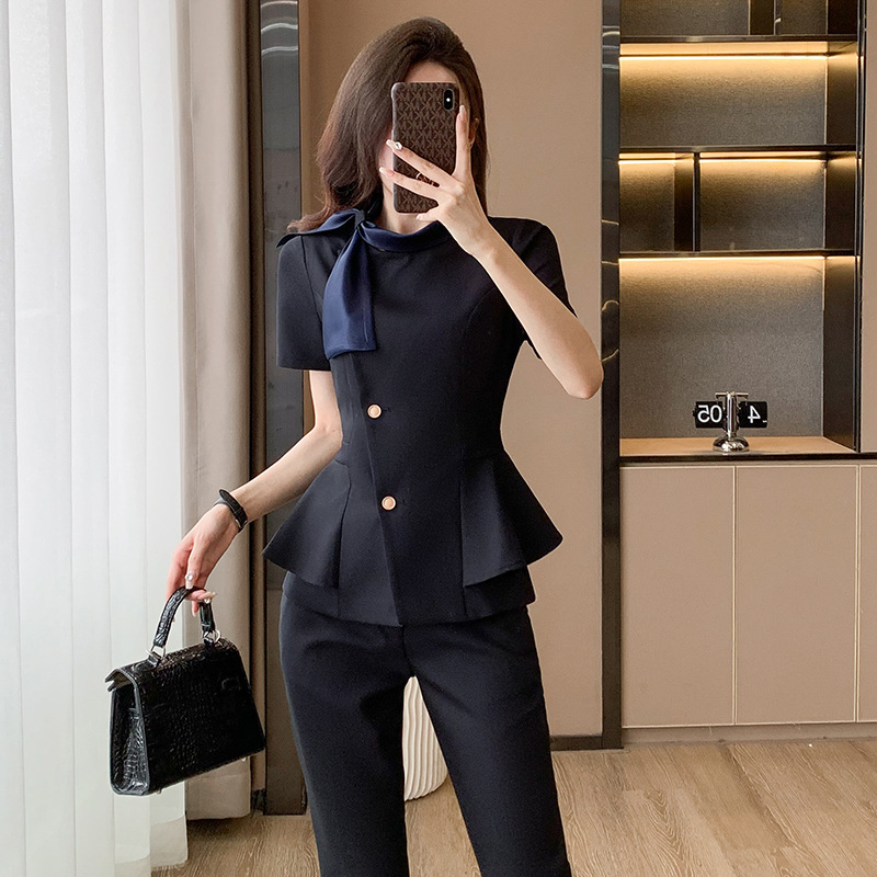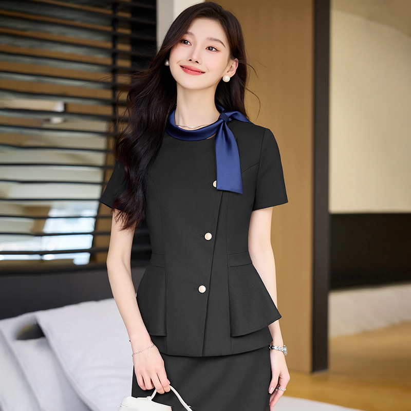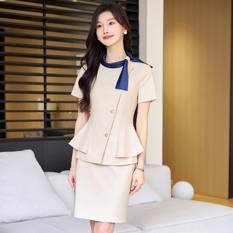 2024 new front desk reception short sleeve professional suit suit fashion temperament jewelry store overalls high-end tooling