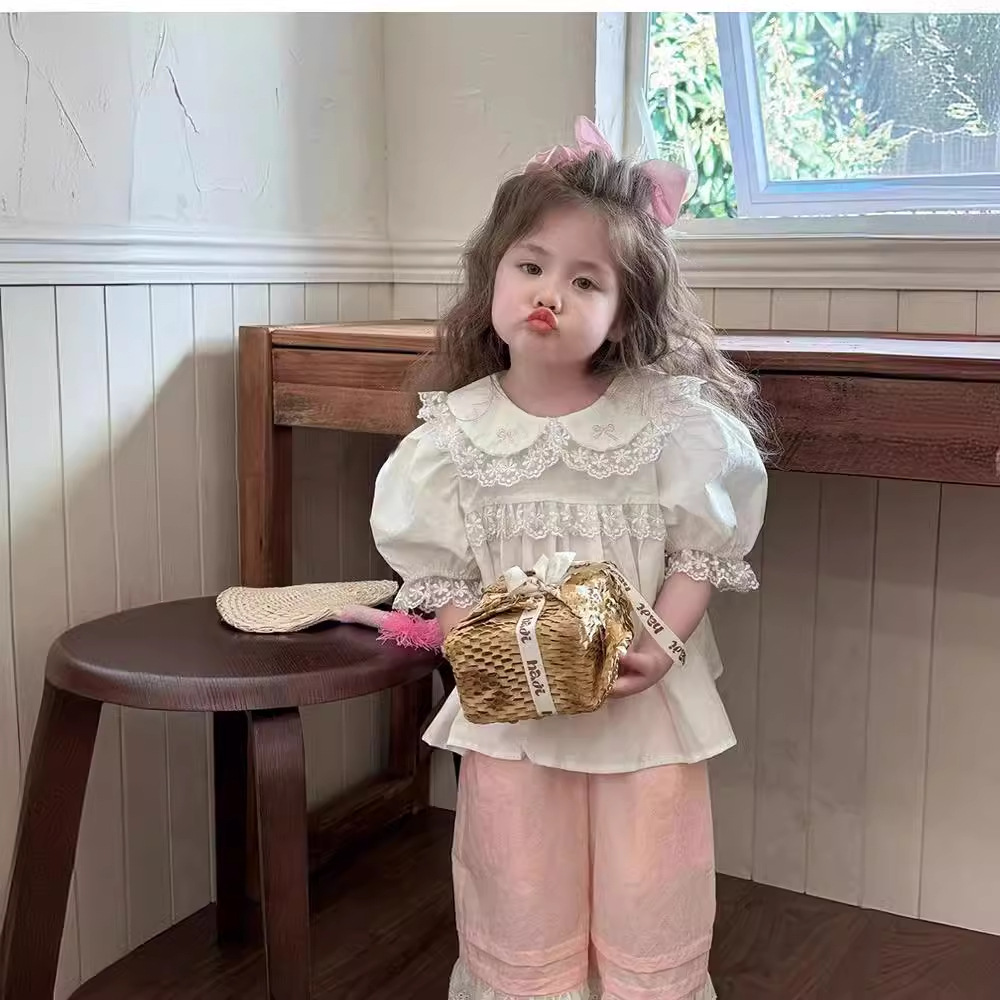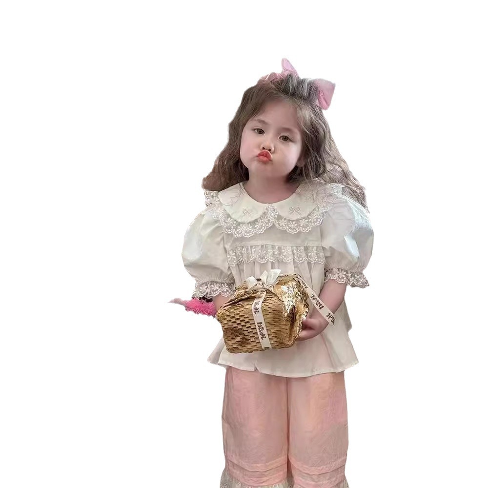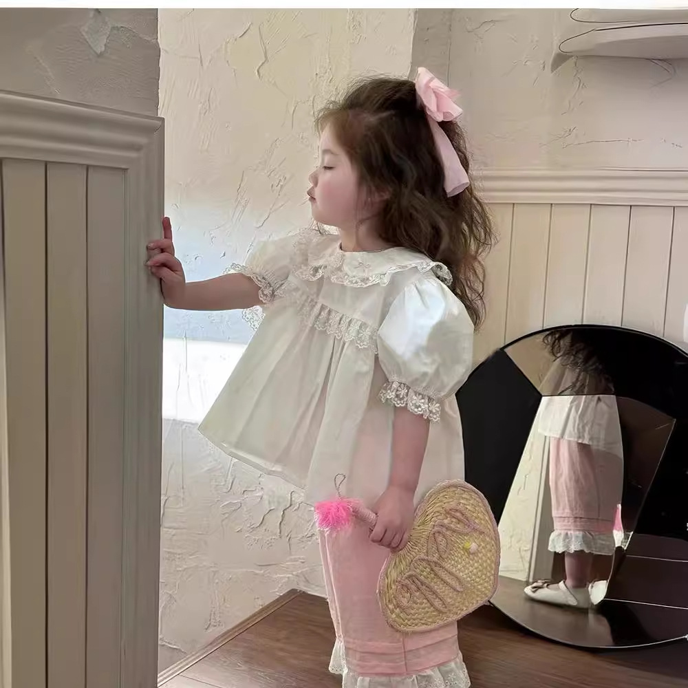 | nameOriginal | 2024 New Girls' Spring and Summer Doll Collar Lace White Shirt Baby Girl's Short-sleeved Sweet Shirt Summer Top Trendy |