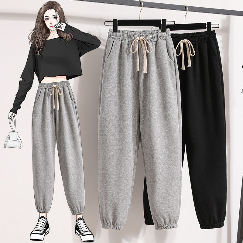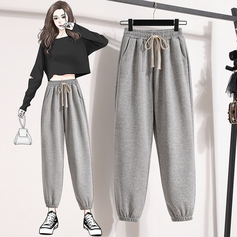 | nameOriginal | 2024 New Grey Sports Pants Women's Spring Autumn and Winter Loose Leg Slimming Casual Fashion All-match Harlan Wei Pants |