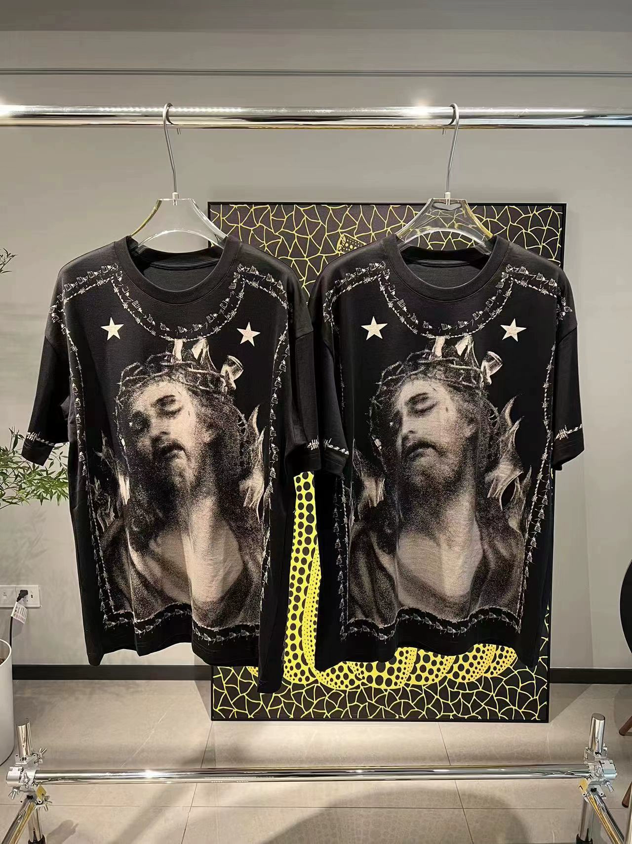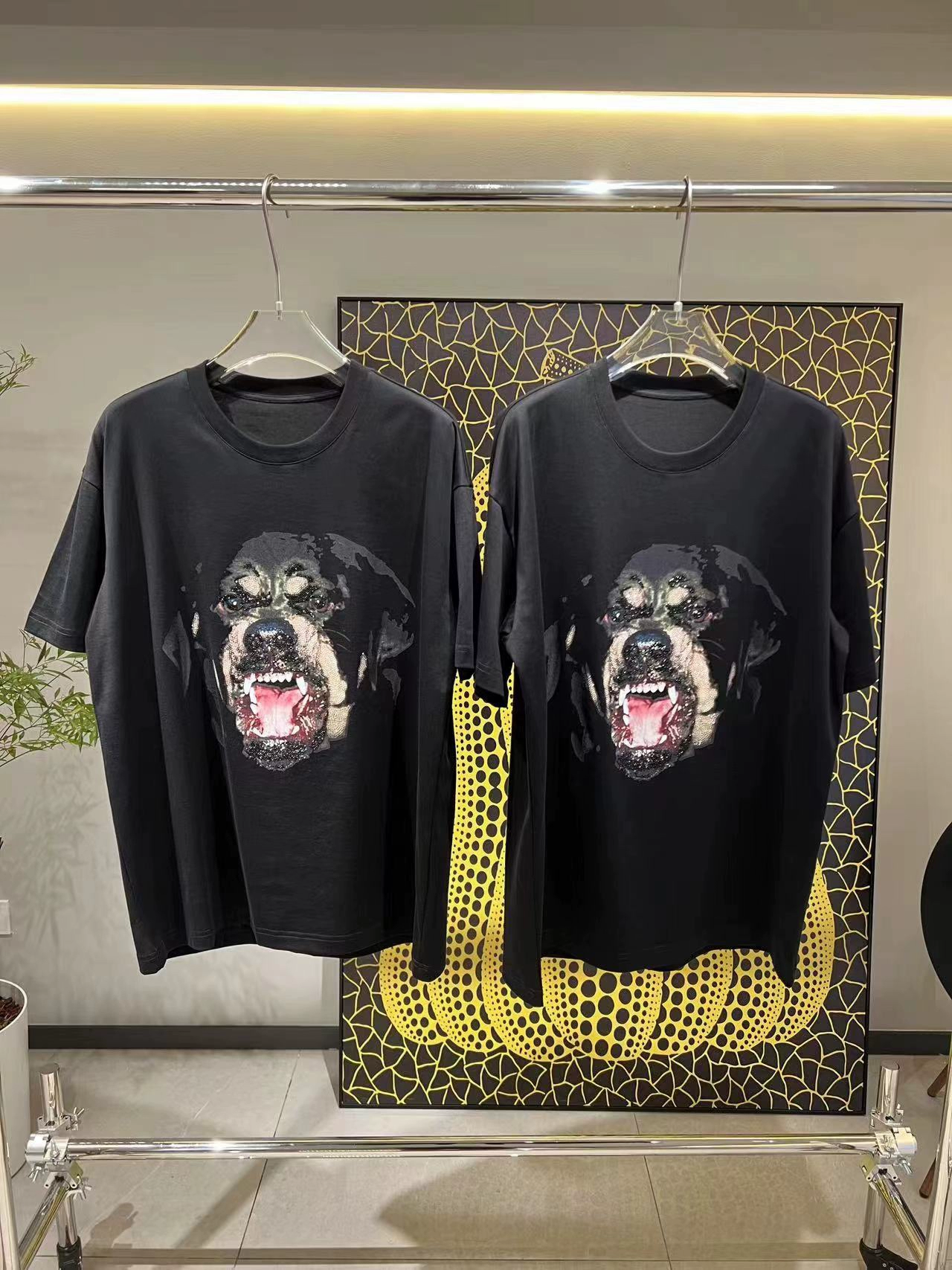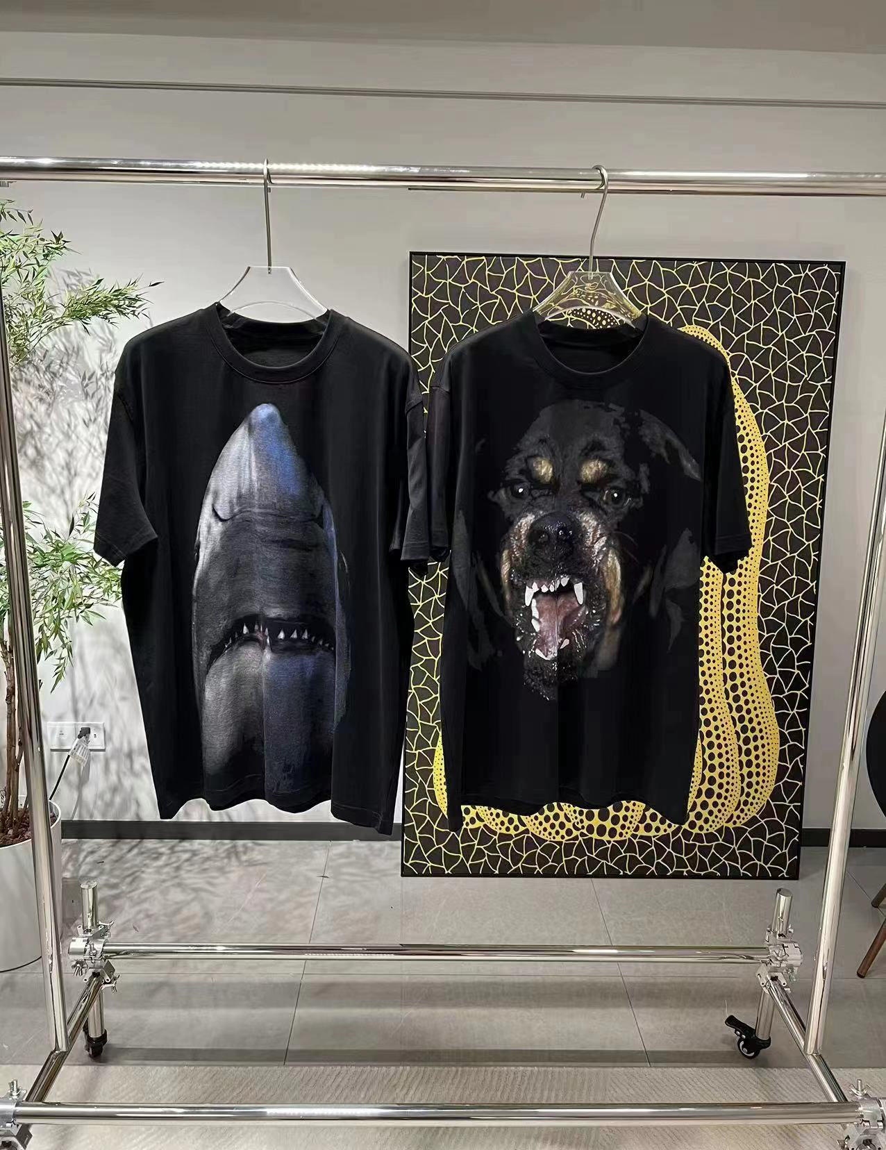 2024 new GVC short-sleeved T-shirt large size loose os version couple wear men and women same style casual shark dog head feather