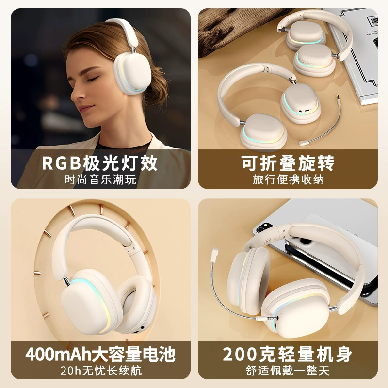 2024 new head-mounted Bluetooth headset wireless luminous gaming headset ultra-long battery life foldable rotating headset