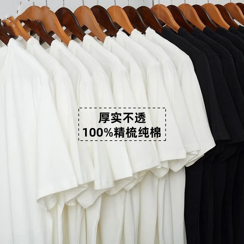| nameOriginal | 2024 New Heavy White Shirt Base Round Neck Shirt American Loose Short Sleeve Inner Casual Couple Dress |